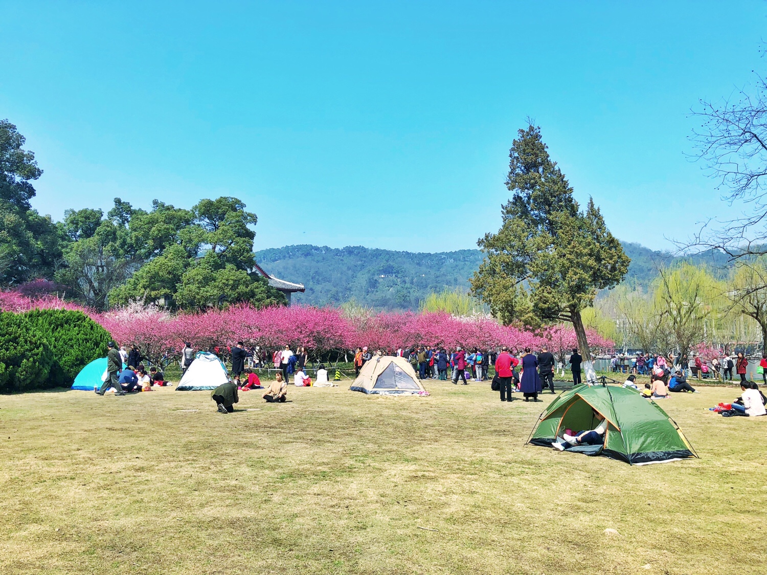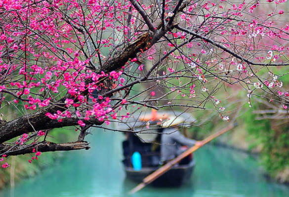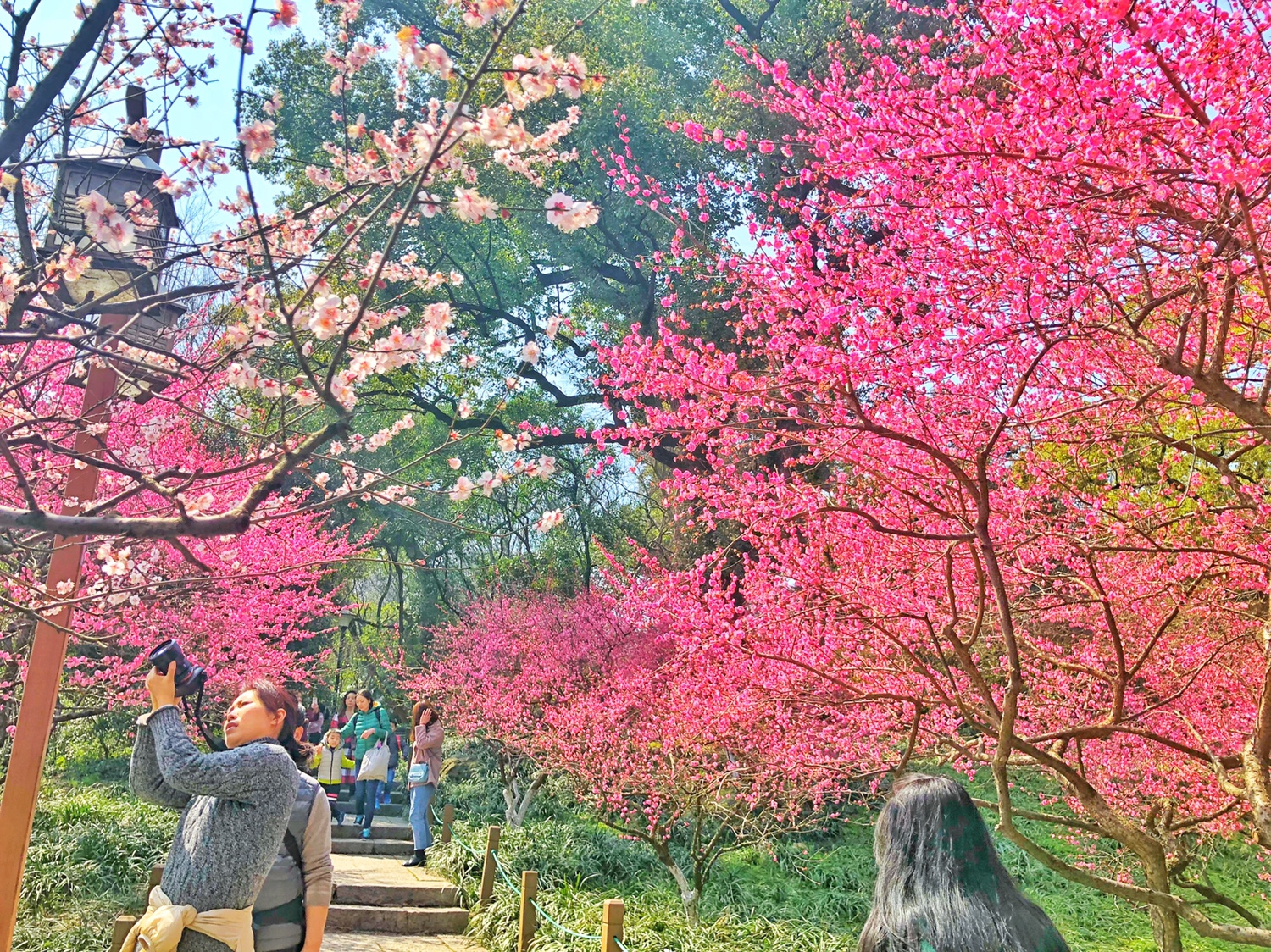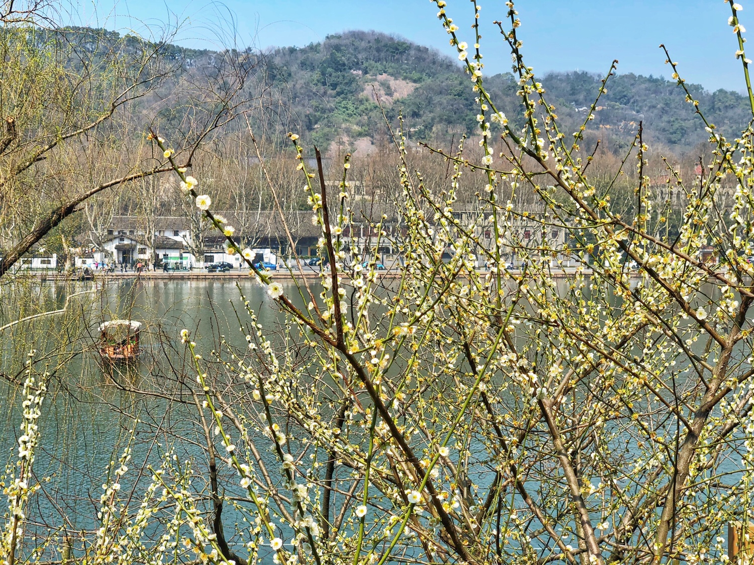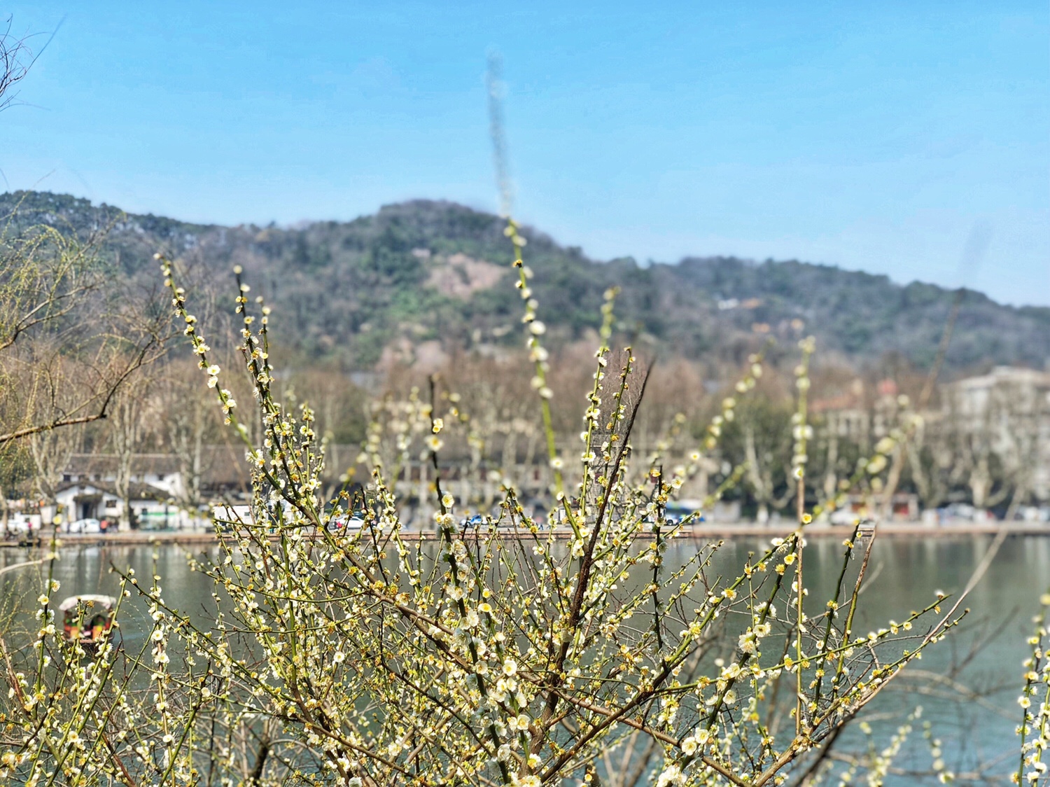 จากที่เคยลองค้นหาข้อมูลดู แถวซีหูช่วงนี้เป็นช่วงที่ดอกบ๊วยเบ่งบาน (Plum Blossom) ดอกบ๊วยสีจะเข้มกว่าซากุระ และตัวดอกเป็นทรงกลม