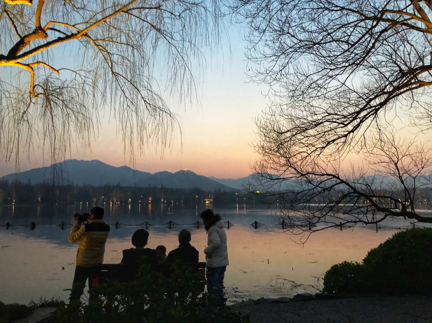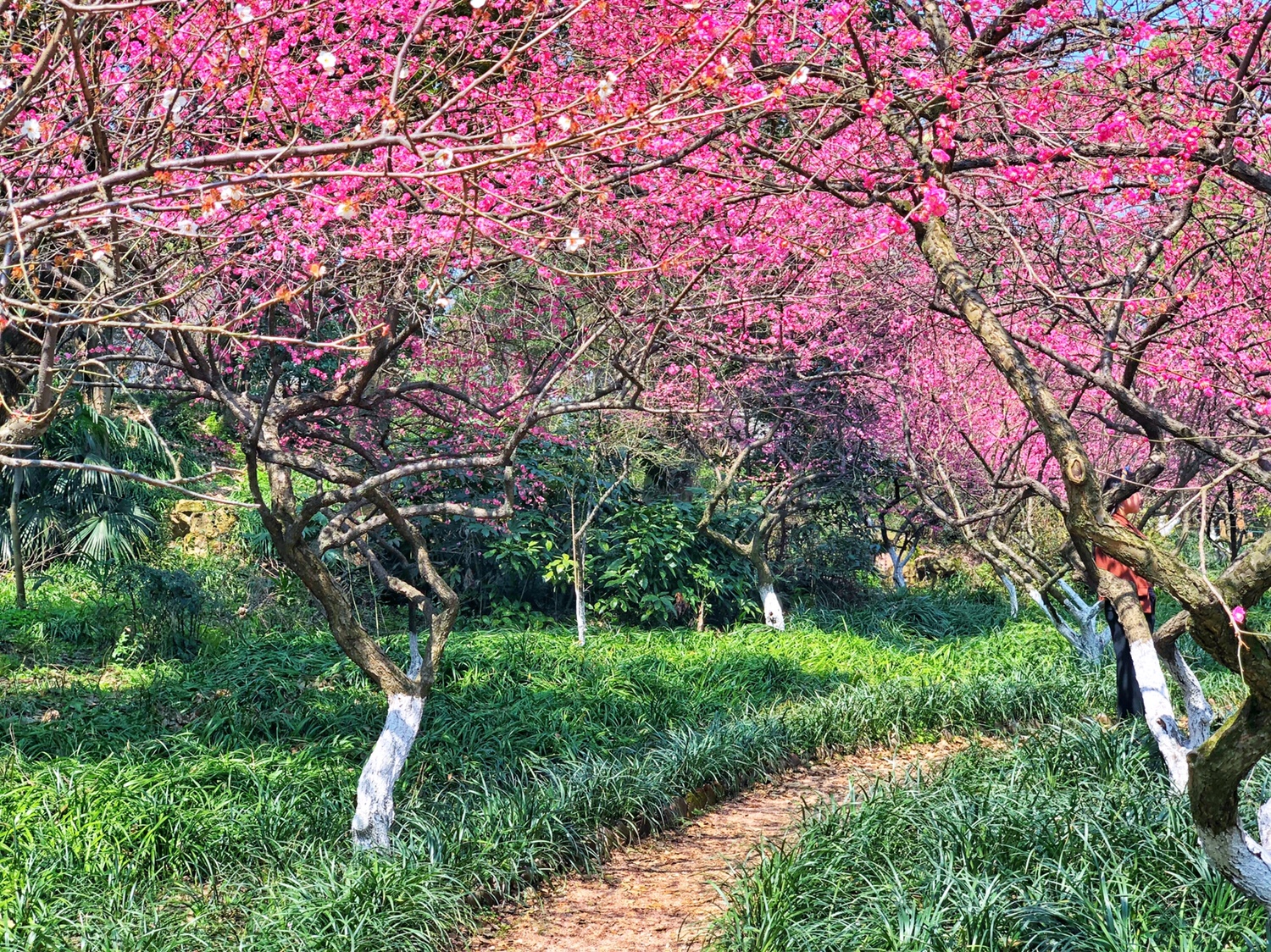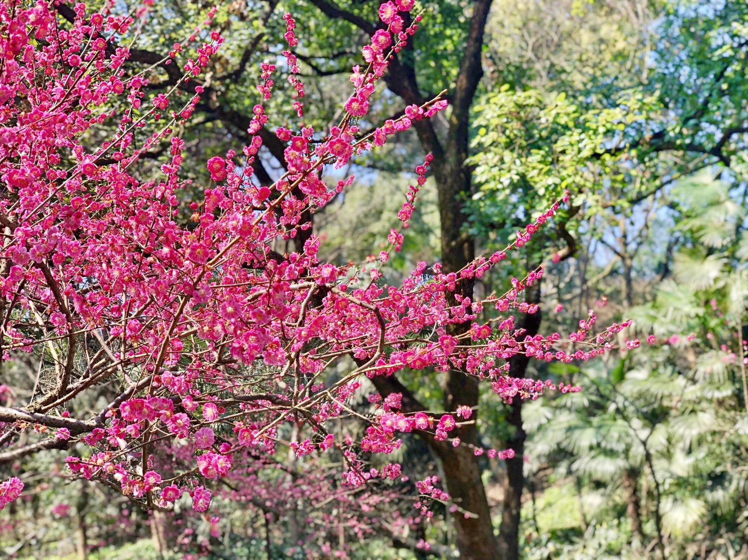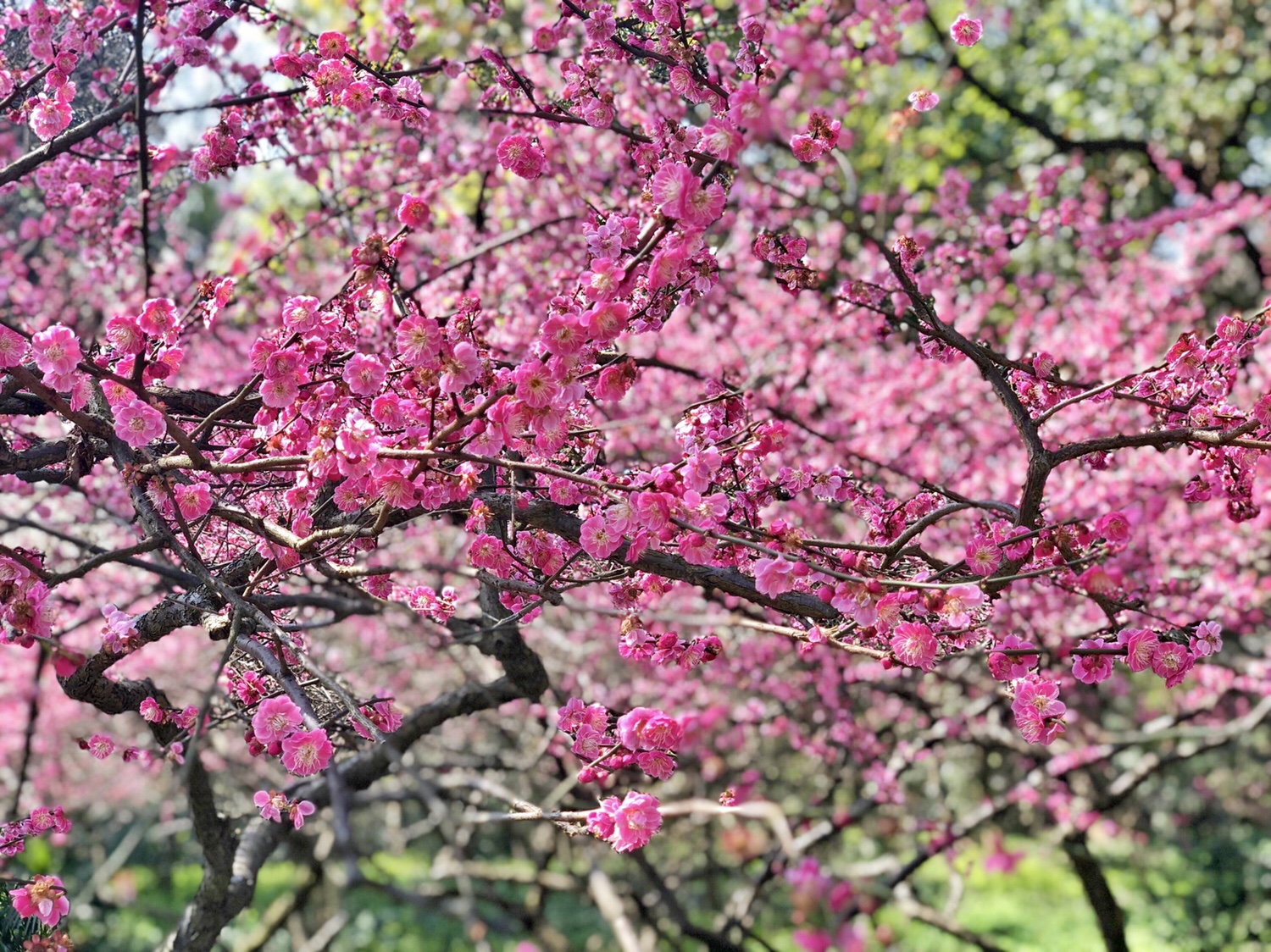 จากที่เคยลองค้นหาข้อมูลดู แถวซีหูช่วงนี้เป็นช่วงที่ดอกบ๊วยเบ่งบาน (Plum Blossom) ดอกบ๊วยสีจะเข้มกว่าซากุระ และตัวดอกเป็นทรงกลม