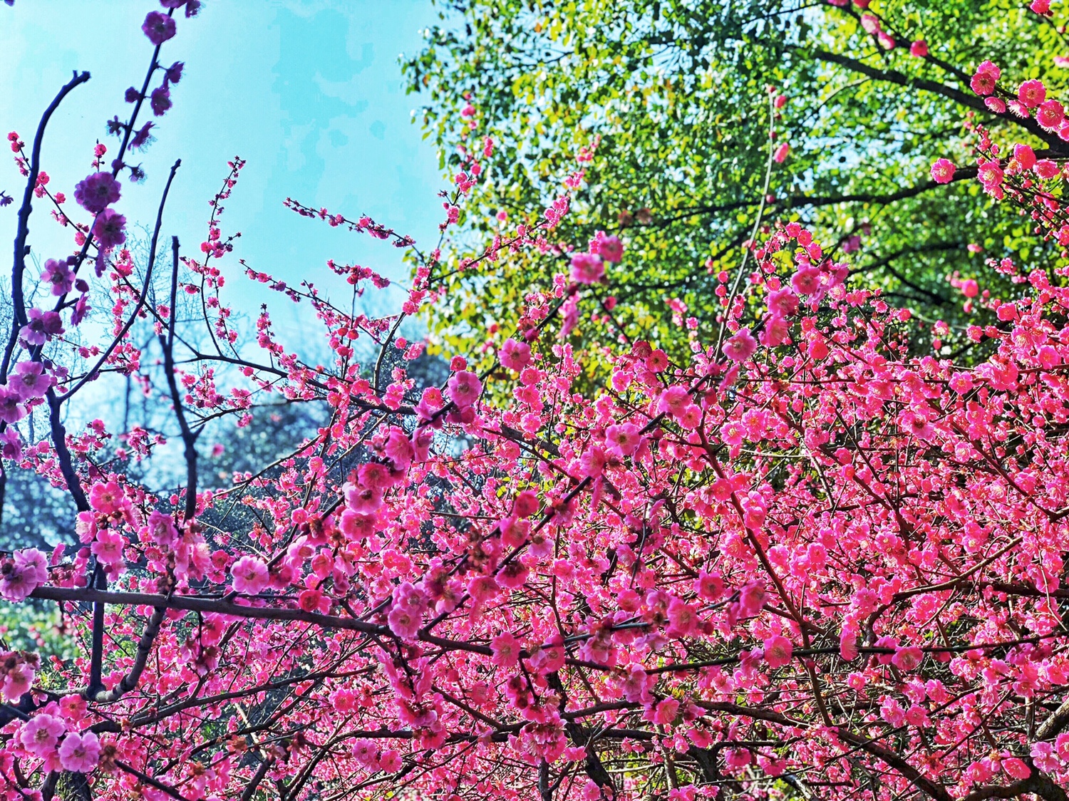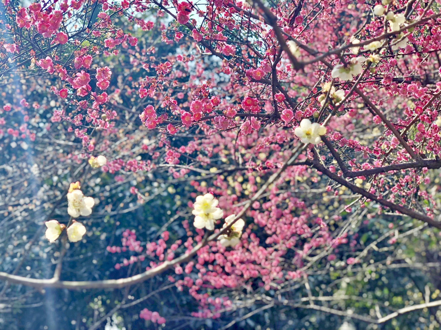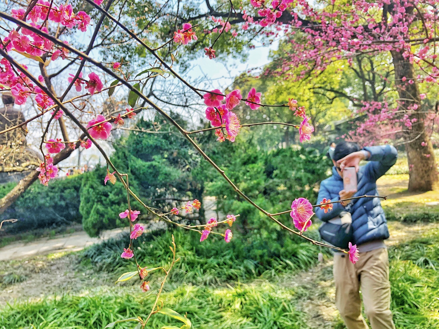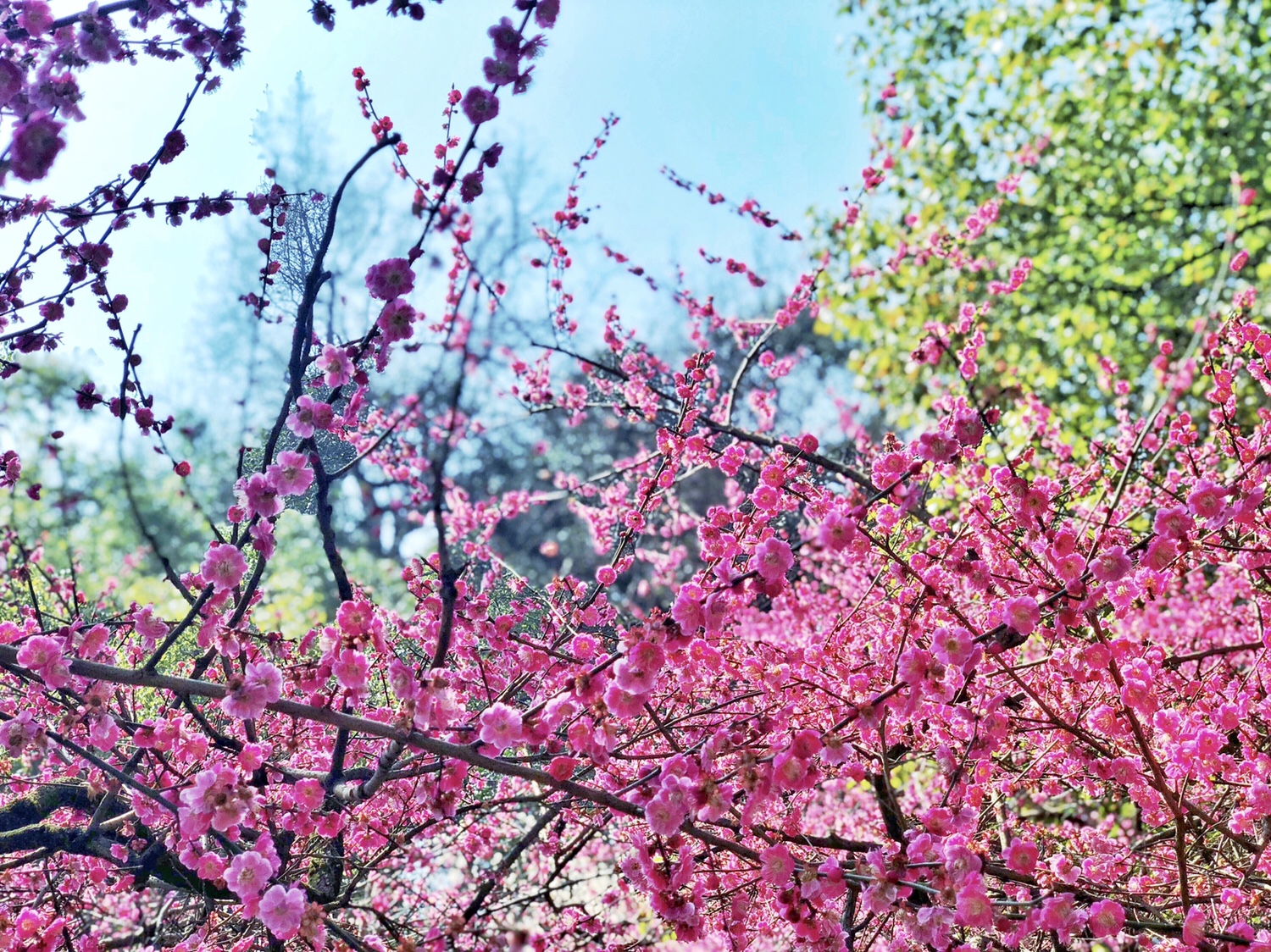 จากที่เคยลองค้นหาข้อมูลดู แถวซีหูช่วงนี้เป็นช่วงที่ดอกบ๊วยเบ่งบาน (Plum Blossom) ดอกบ๊วยสีจะเข้มกว่าซากุระ และตัวดอกเป็นทรงกลม