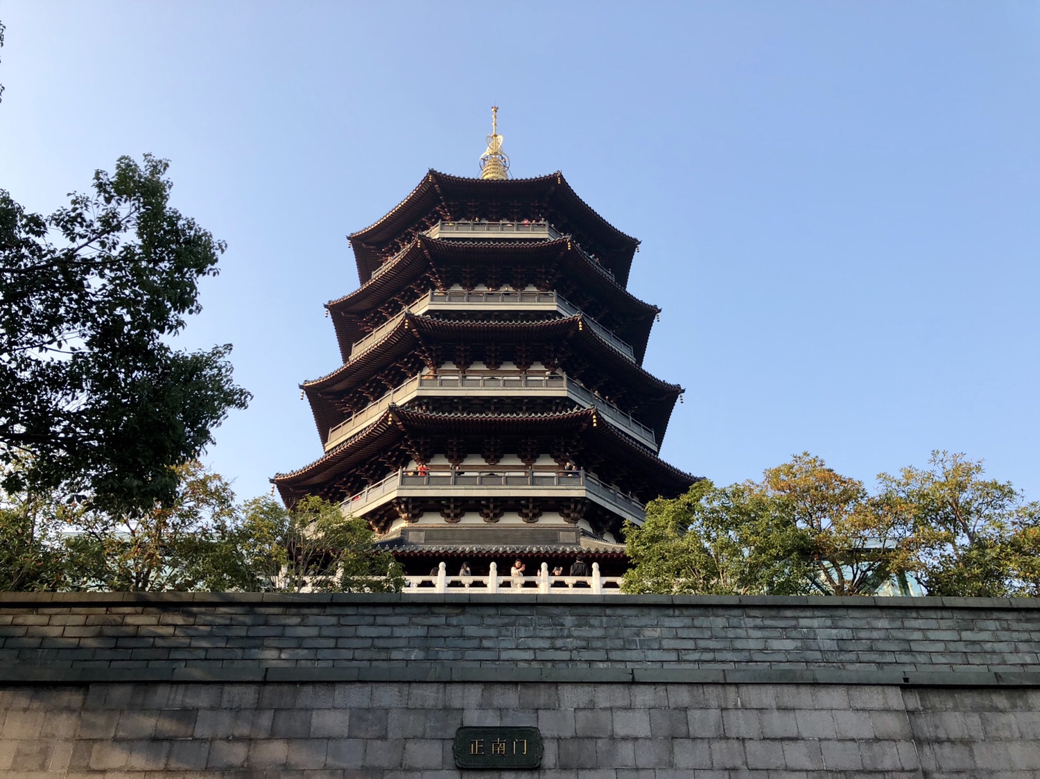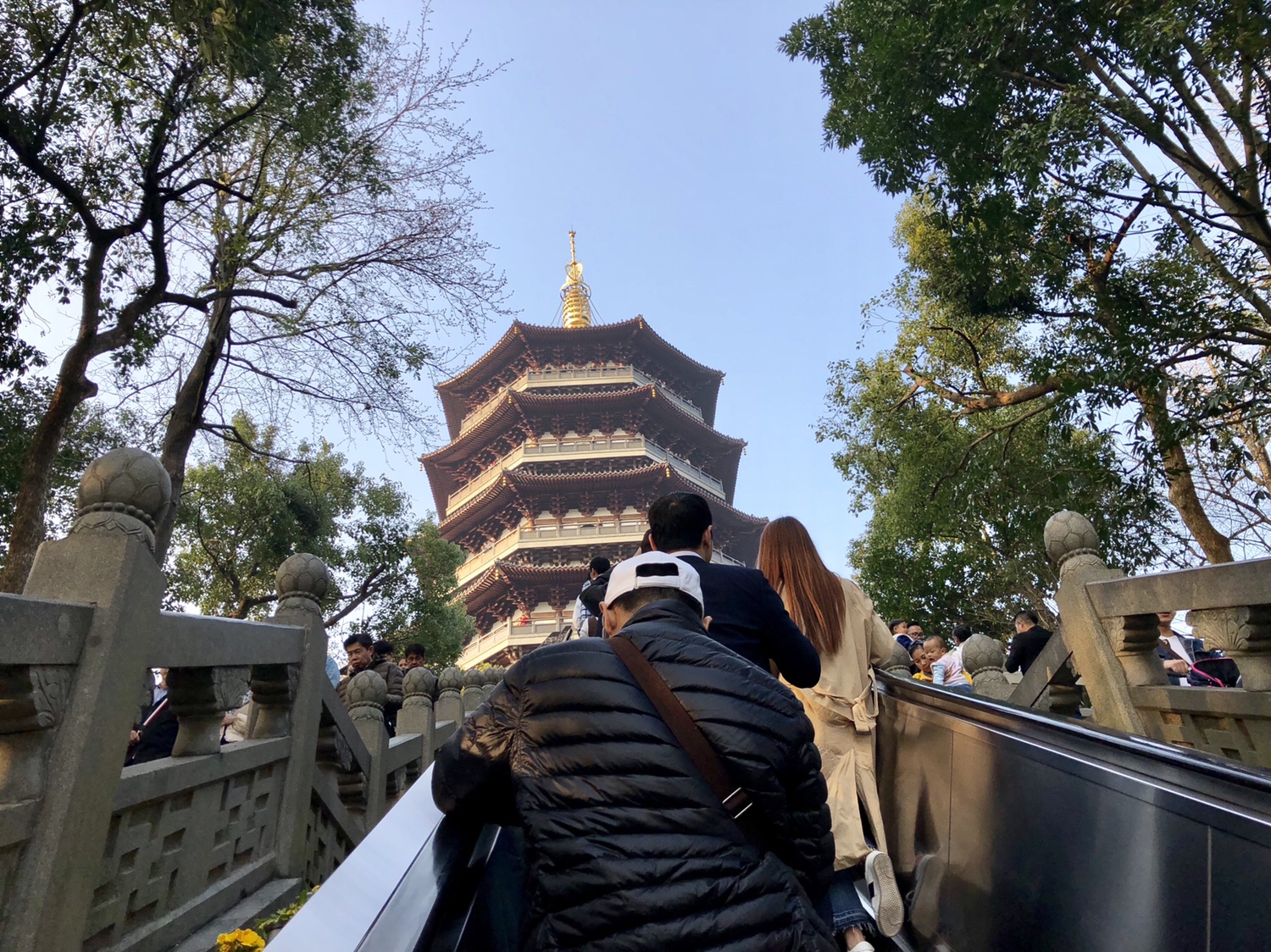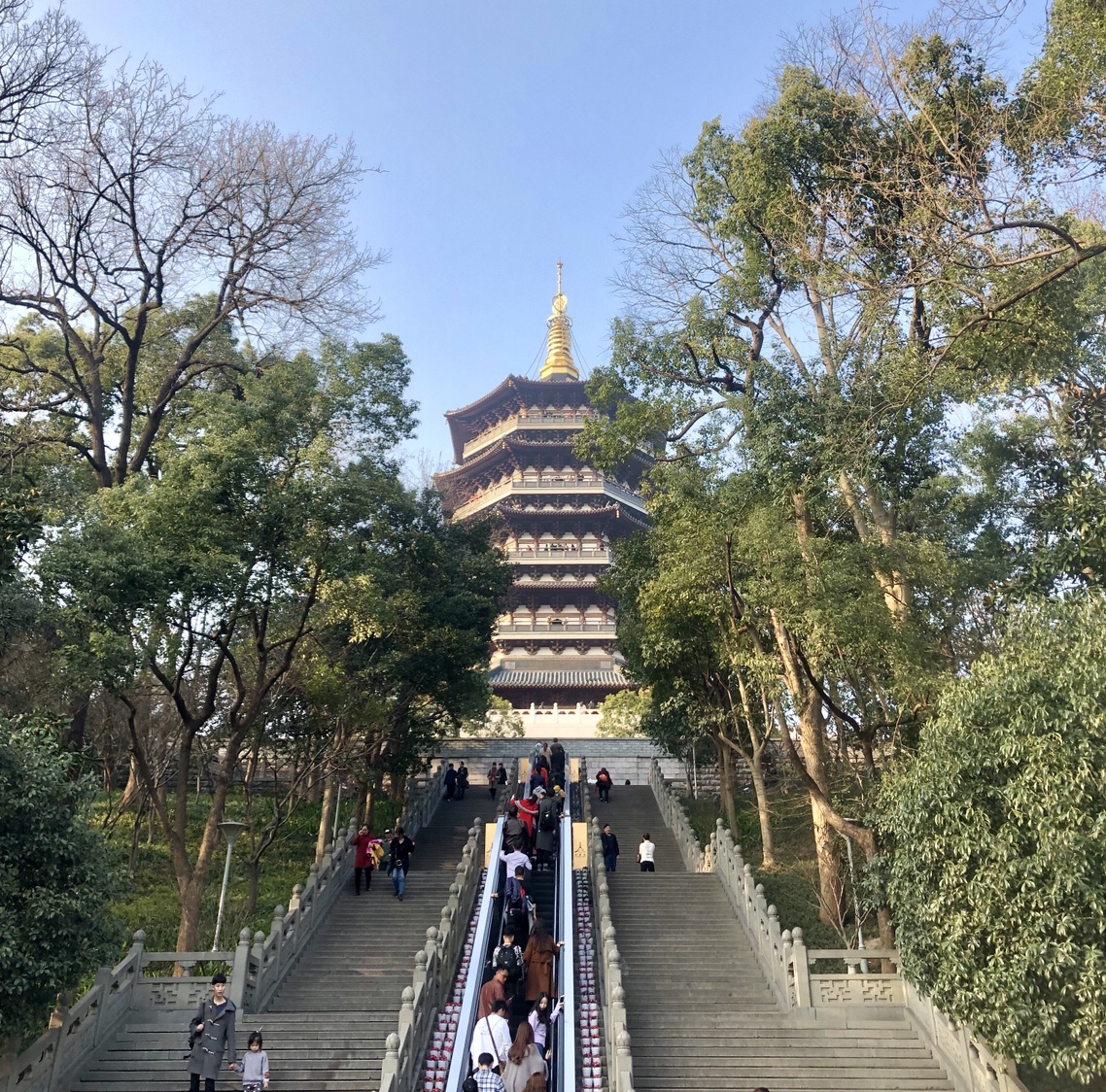 มาถึงแล้วเจดีย์เหลยเฟิง เจดีย์ 8 เหลี่ยม สูง 5 ชั้น ที่ตั้งอยู่บนยอดเขาเป่าซื่อซาน (Baoshi Shan) ทางทิศใต้ของทะเลสาบซีหู
