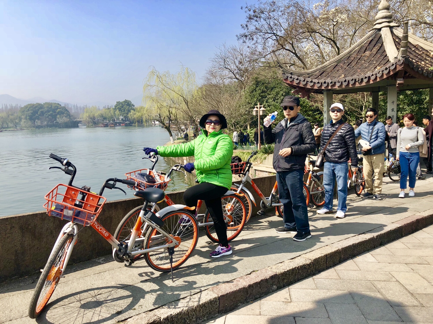 และแถวนี้จักรยาน Mobike เยอะมาก พวกเราเลยกลับมาปั่นจักรยานลงเขาเพื่อเดินทางไปยังเจดีย์เหลยเฟิง (Leifeng Pagoda) ตำนานนางพญางูขาวเป็นสถานที่ถัดไป