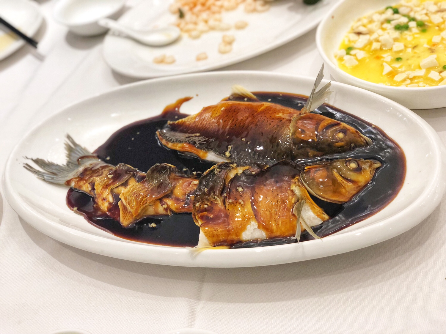 คราวนี้เป็นปลานึ่งในน้ำซอสเปรี้ยวหวานกันบ้าง กัดคำแรกเนื้อปลานิ่มมากแต่เต็มไปด้วยก้างเล็กๆ เราที่เป็นคนขี้เกียจแยกก้าง พร้อมทั้งสายตาก็ไม่ค่อยดีจึงรู้สึกว่าทานยาก และตัวน้ำซอสเองมันไม่ค่อยเข้ากันกับปลาเท่าไหร่ แต่ขุ่นแม่เรานั้นกลับบอกว่าอร่อยดี