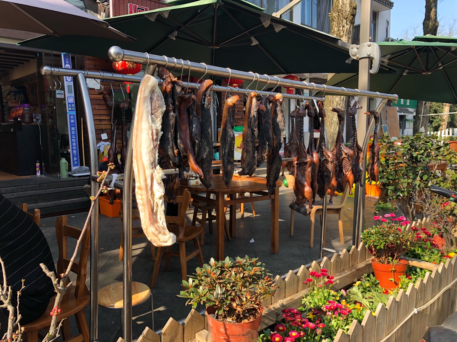 ไหน ๆ ก็นั่งรถเมล์มาถึงนี่กันแล้วก็เลยลองเดินเล่นกันซักหน่อย พวกเราเดินขึ้นเขากันมาเรื่อยๆ ก็เจอร้านอาหารที่เอาเนื้ออะไรออกมาตากกันเต็มไปหมดก็ไม่รู้