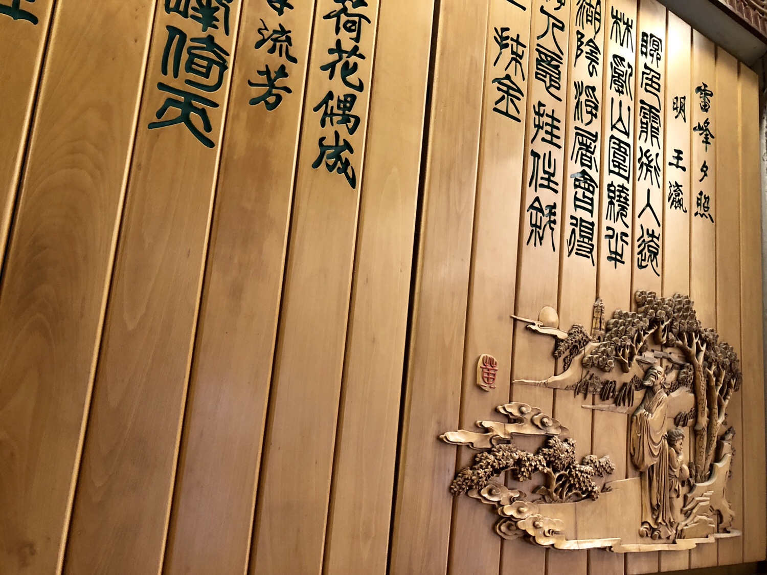 เริ่มได้เวลาปิดของที่นี่แล้วเลยเดินลงบันไดกันมา ระหว่างทางก็มีตัวอักษรแกะสลักซึ่งน่าจะเป็นคำกลอนจากเหล่านักปราชญ์ต่าง ๆ