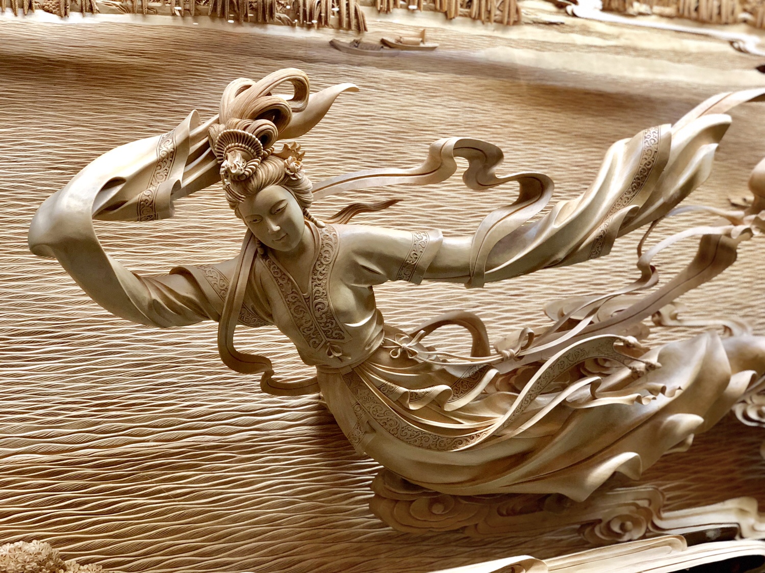 ลงมาถึงชั้นของนางพญางูขาว มีภาพไม้แกะสลัก 3 มิติ พร้อมบรรยายเรื่องราวย่อ ๆ เป็นภาษาอังกฤษ