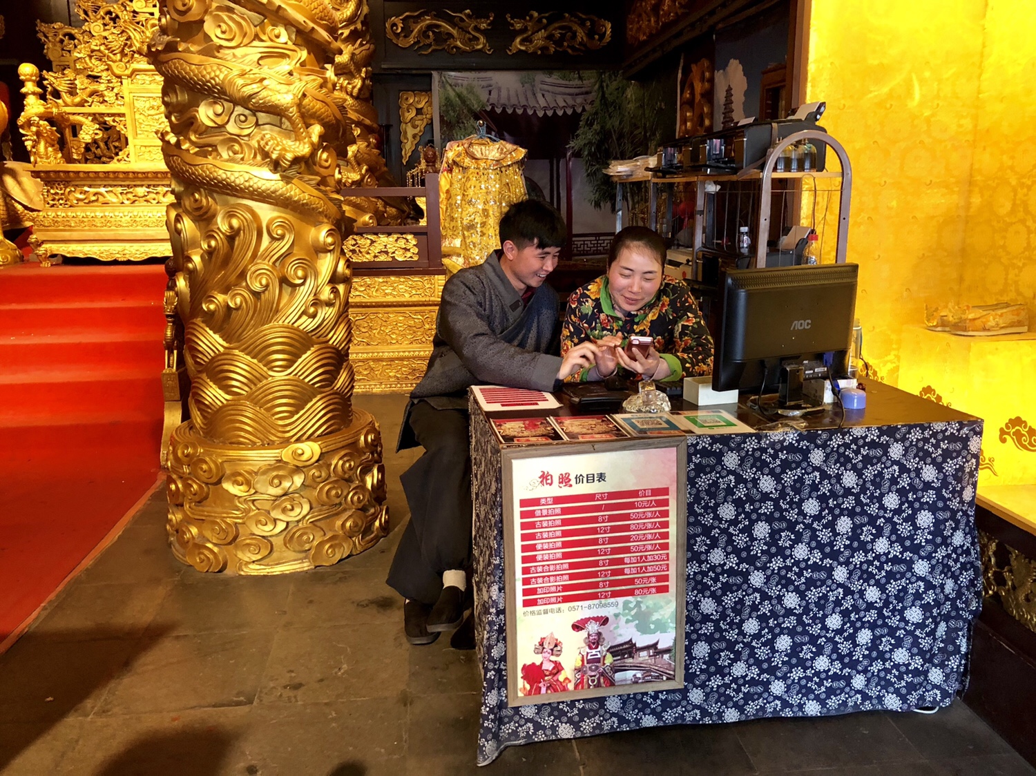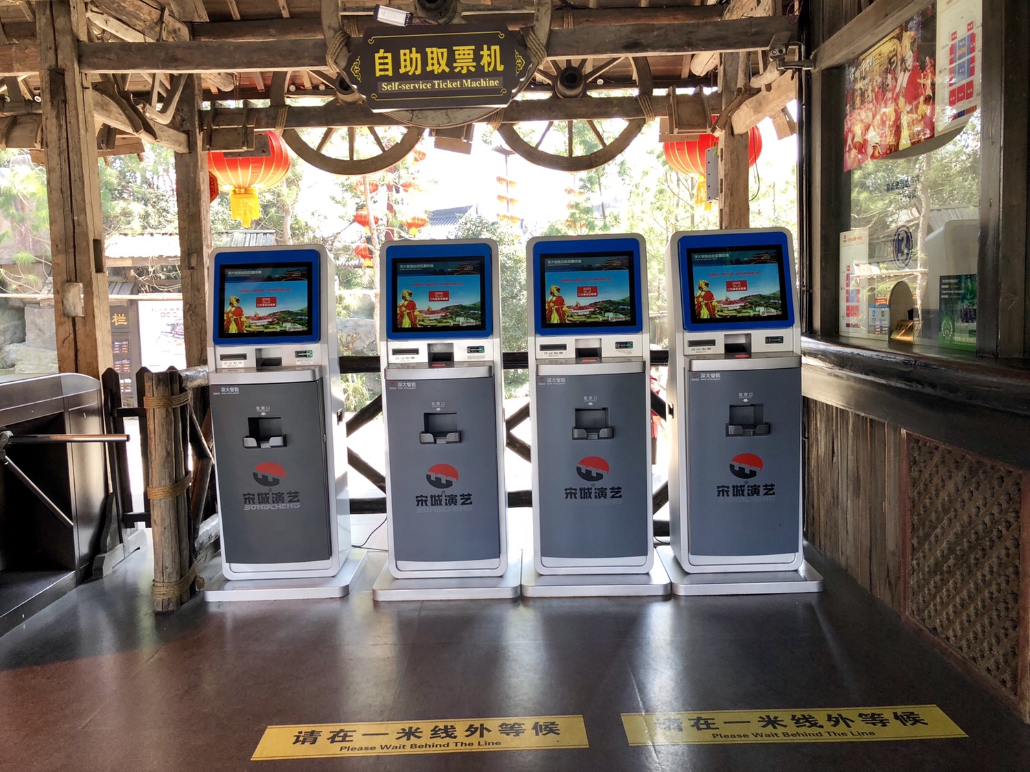 ด้านหน้าทางเข้ามีตู้จ่ายเงินอัตโนมัติด้วย ขนาดอยู่นอกเมืองแบบนี้ยังใช้เทคโนโลยีทันสมัยทั้งหมด เราเดินเข้าไปอยากลองใช้ดูบ้าง แต่ทุกอย่างเป็นภาษาจีนเลยเดินกลับมาต่อคิวที่เคาน์เตอร์ธรรมดาเหมือนเดิม