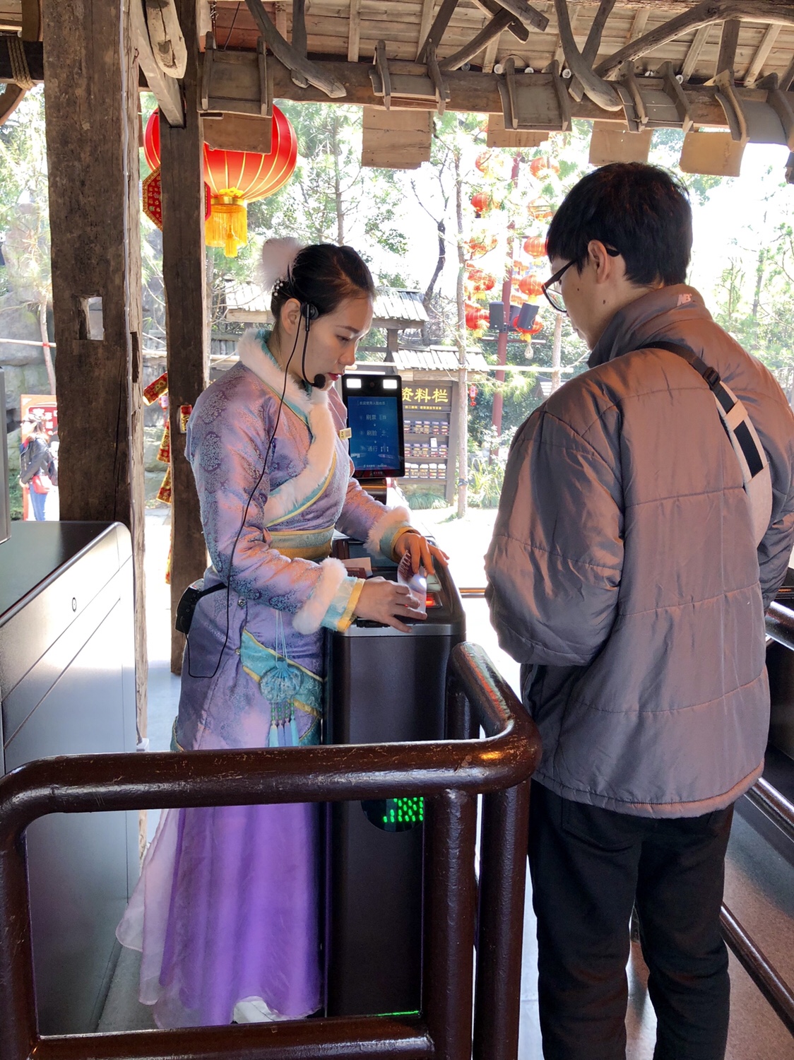 ถึงเวลาเดินเข้าไปในเมืองซ่งกันแล้ว ตรงทางเข้าจะมีพนักงานแต่งชุดจีนสวยๆ มาคอยต้อนรับ
