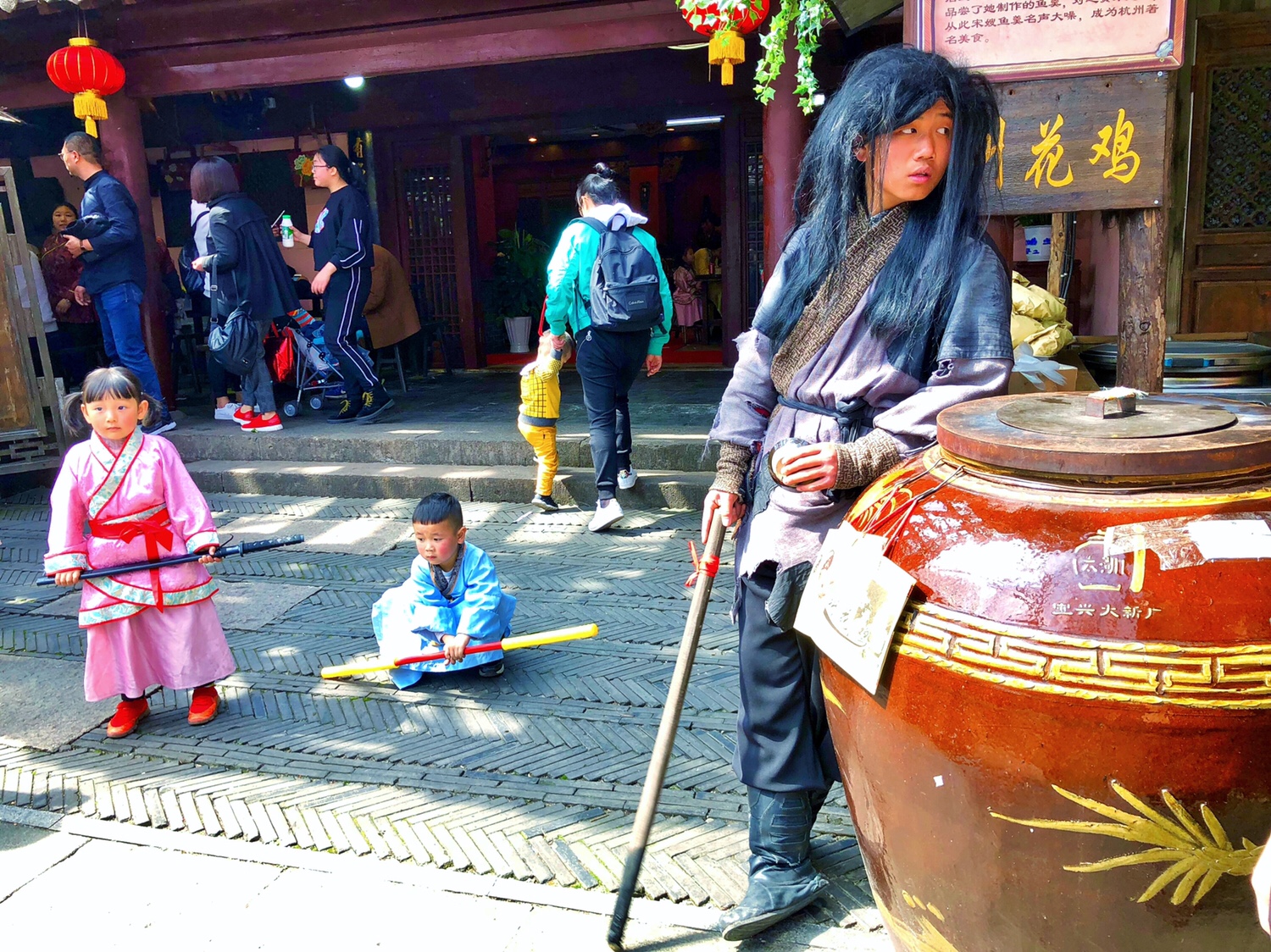 อิ่มแล้วก็ออกมาจากโรงเตี้ยม เดินเล่นเข้าไปข้างในต่อ อยู่ที่นี่ด้วยบรรยากาศที่พาไปทำให้รู้สึกเหมือนกำลังย้อนอดีต เพราะทุกคนล้วนแต่แต่งกายตามสมัยราชวงศ์ซ่งทั้งนั้น รวมถึงนักท่องเที่ยวหลาย ๆ คนด้วย