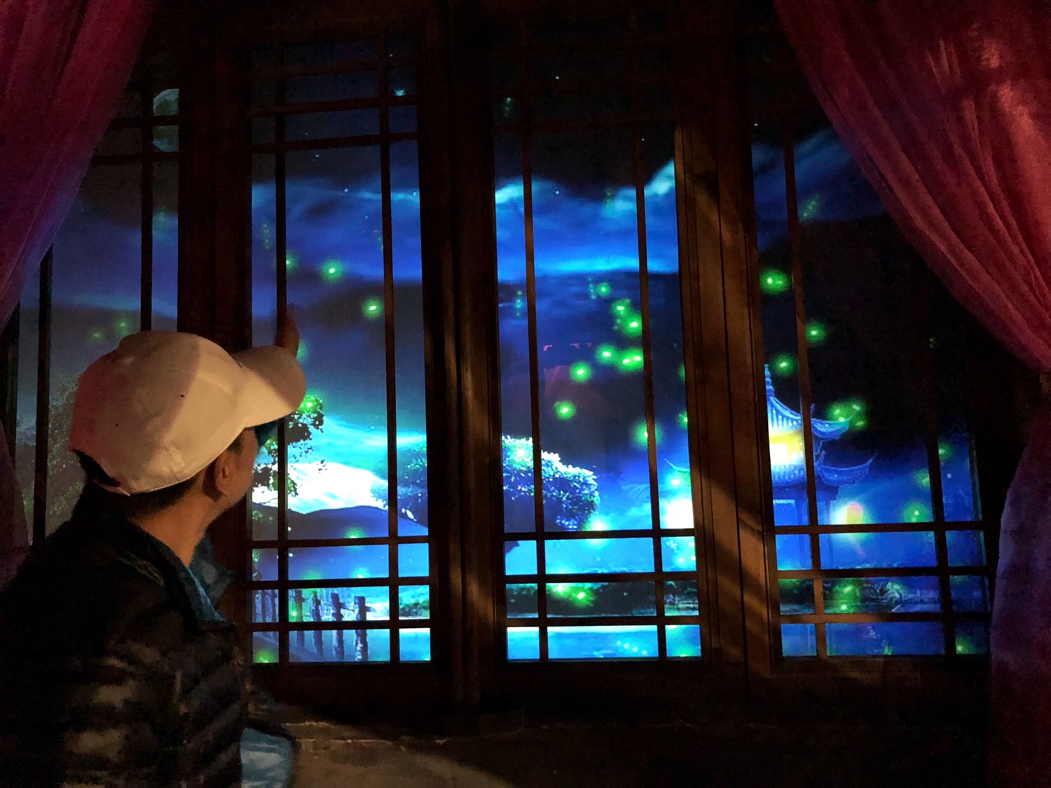 พวกเราเดินเข้ามาอีกห้อง ทุกอย่างในห้องมีลูกเล่นจากเซ็นเซอร์ที่ฝังอยู่ ตรงนี้ถ้าเราเอามือปัดหิ่งห้อยตรงหน้าต่าง หิ่งห้อยตรงนั้นก็จะกระจายตัวทันที