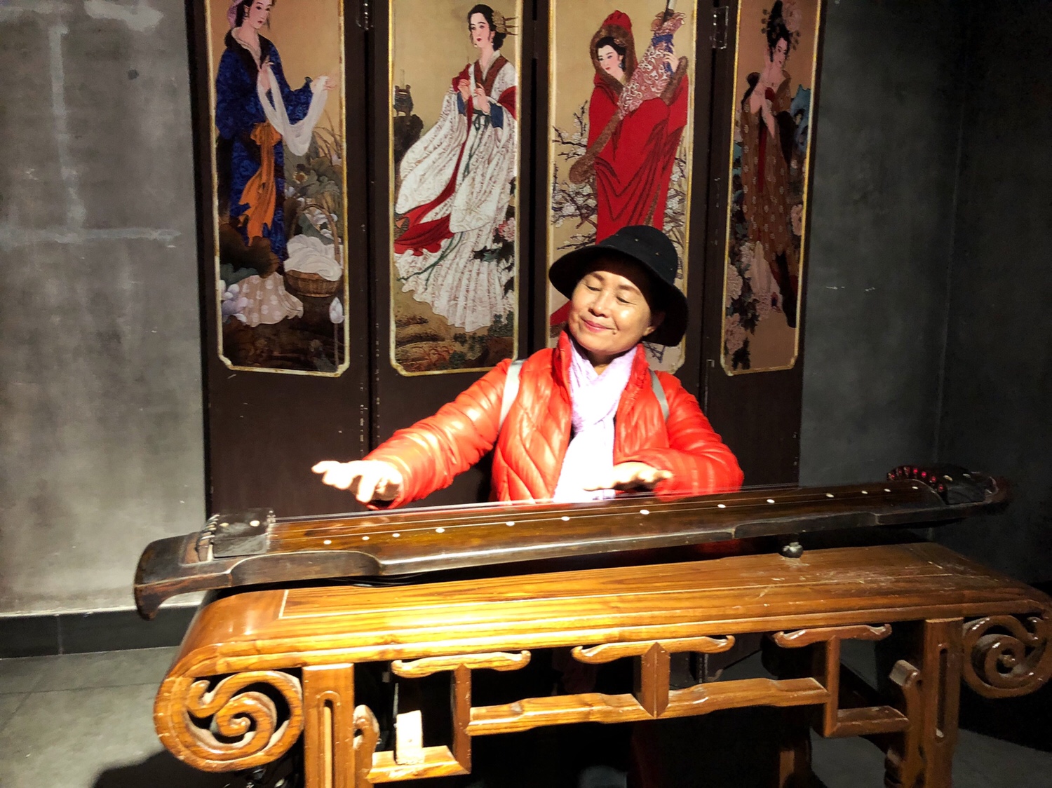 ข้างๆ กันนั้นมีเครื่องดนตรีชิ้นเอกของจีนวางอยู่ นั่นก็คือพิณนั่นเอง เพียงแค่ดีด ๆ กด ๆ มันก็เริ่มบรรเลงเพลงอันไพเราะแล้ว แหม่ ดูขุ่นแม่เราโชว์ลีลาซะก่อน เอาซะเหมือนเลย