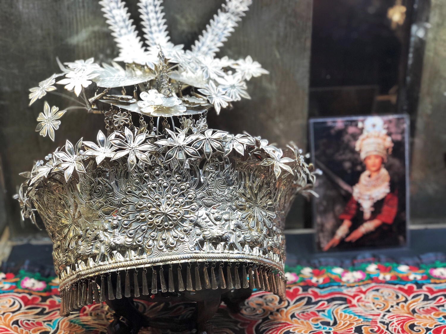 หมวกที่ทำขึ้นด้วยเงินแกะสลักทั้งหมด