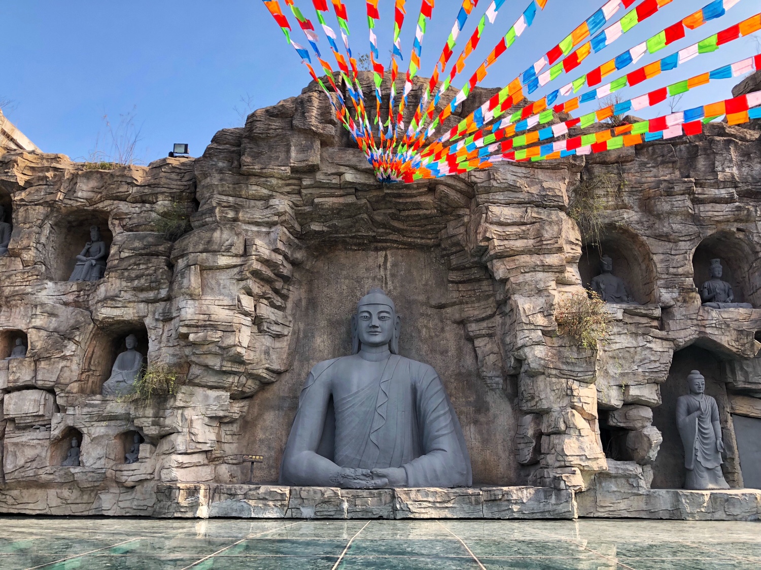 หลังพระองค์นี้สามารถเดินเข้าไปด้านหลังที่เป็นถ้ำได้ ด้านในมีพระองค์เล็ก ๆ และสะพานที่มีจักรวาลหมุนรอบ