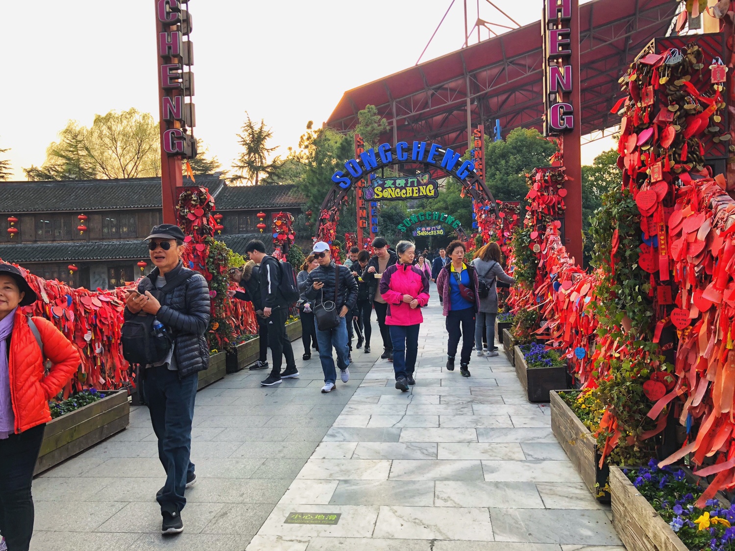 เมืองจำลองราชวงศ์ซ่ง (宋城, Song Dynasty Town) คือจุดหมายของเราในวันนี้ ในตอนวางแผนนั้นคิดว่าจะไปสวนดอกไม้กันก่อน แต่เมื่อวานในระหว่างที่ปั่นจักรยานเที่ยวรอบซีหูพวกเราก็ได้ไปสวนดอกบ๊วยแล้ว วันนี้เลยตรงไปที่เมืองจำลองกันเลยดีกว่า