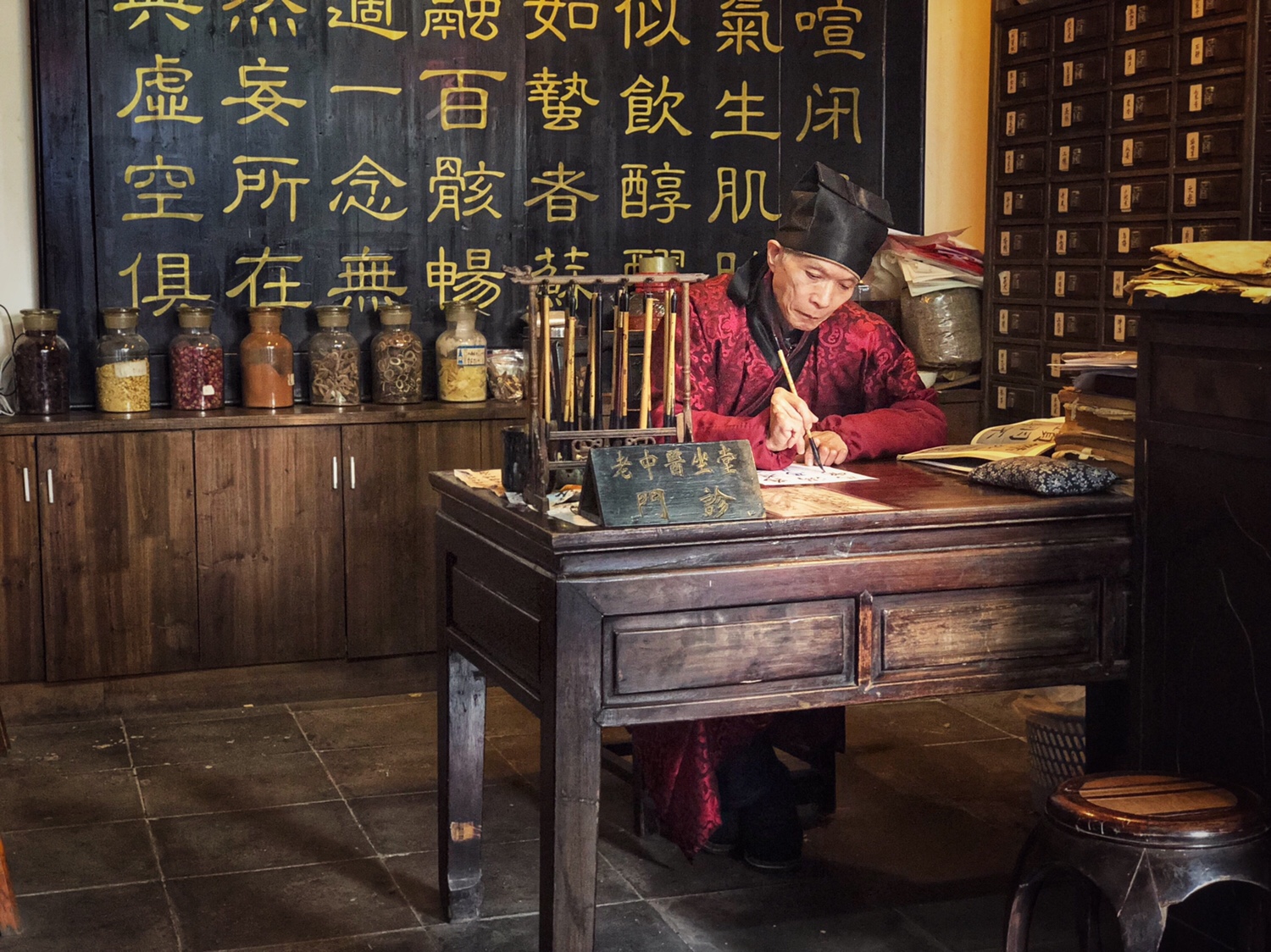 มีท่านซินแสกำลังเขียนตัวอักษรจีน ดูนิ่งและขลังมาก