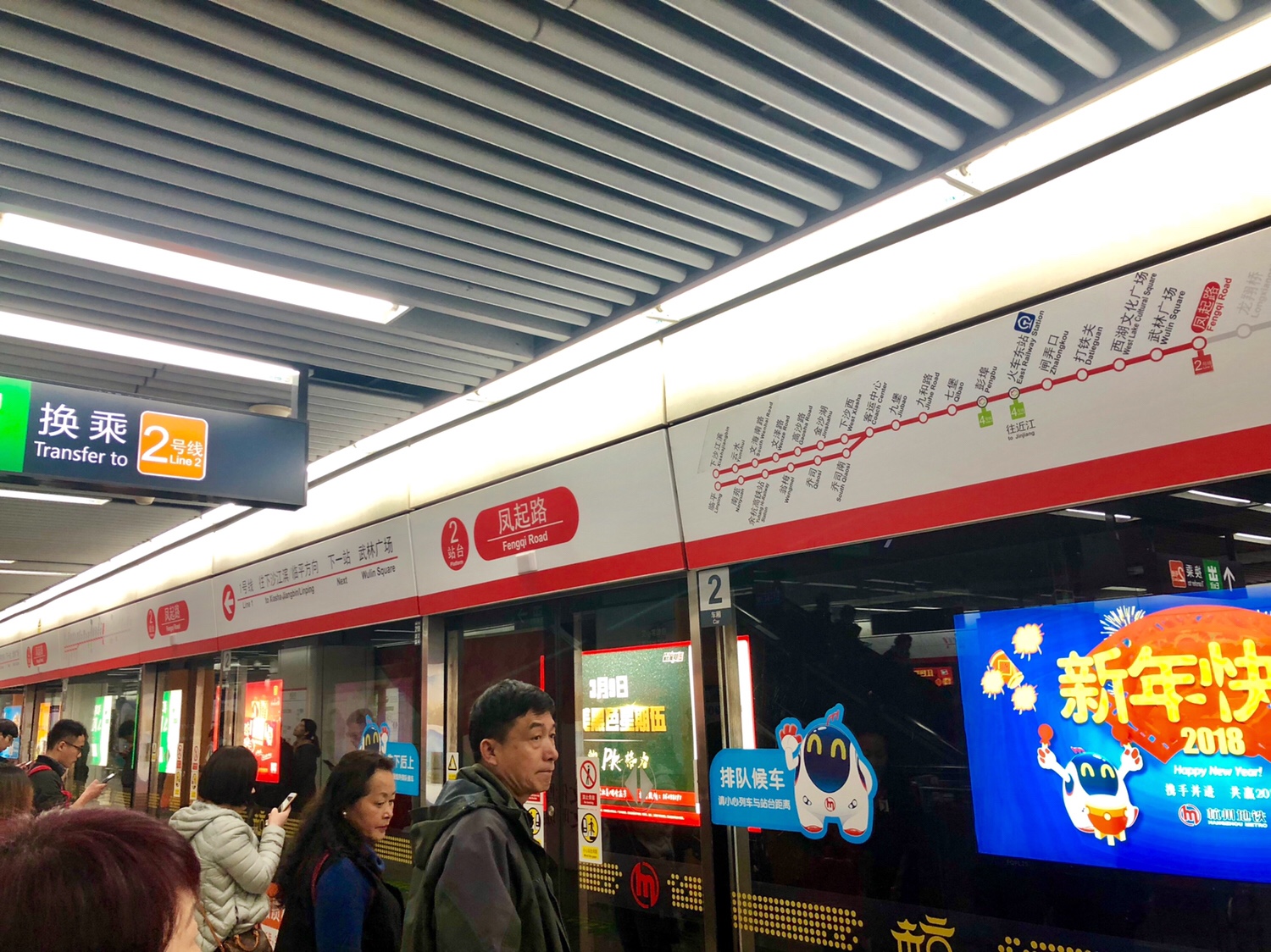 เช้าวันนี้ไกด์ขาประจำ Google map ก็พาเราเดินมาที่สถานีรถไฟ Fengqi Road Station (凤起路) แล้วจากนั้นก็ต้องซื้อตั๋วรถไฟ คนละ 3 หยวน เพื่อไป Coach Center Station ได้บัตรมาก็ทาบบัตรเข้ารถไฟสาย 1 สีแดง ได้เลย