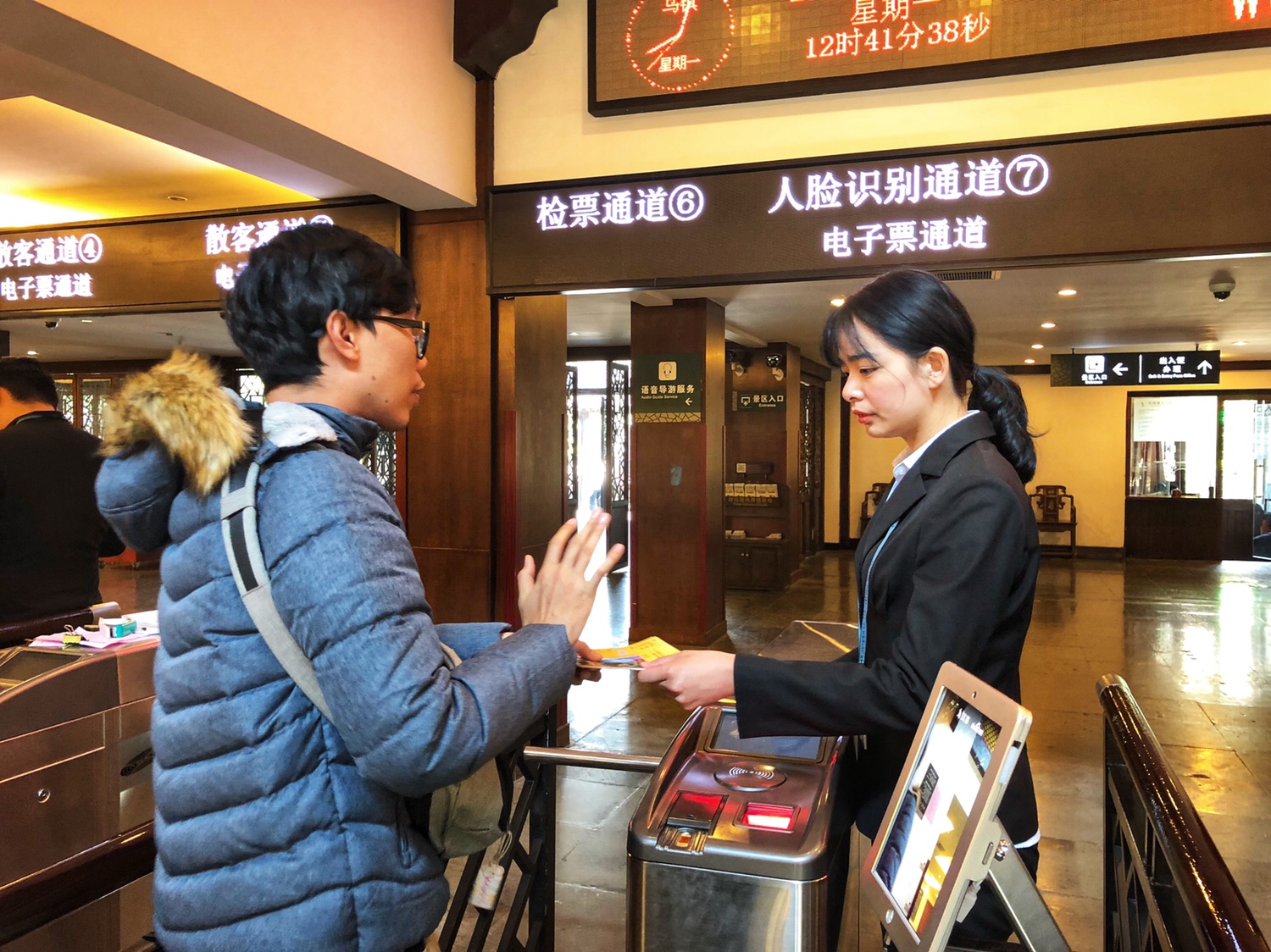 แล้วเลี้ยวซ้ายเพื่อไปซื้อตั๋วขากลับเตรียมไว้ก่อน (ถ้าเลี้ยวขวาจะไปขึ้นรถเมล์ไปอู่เจิ้น)