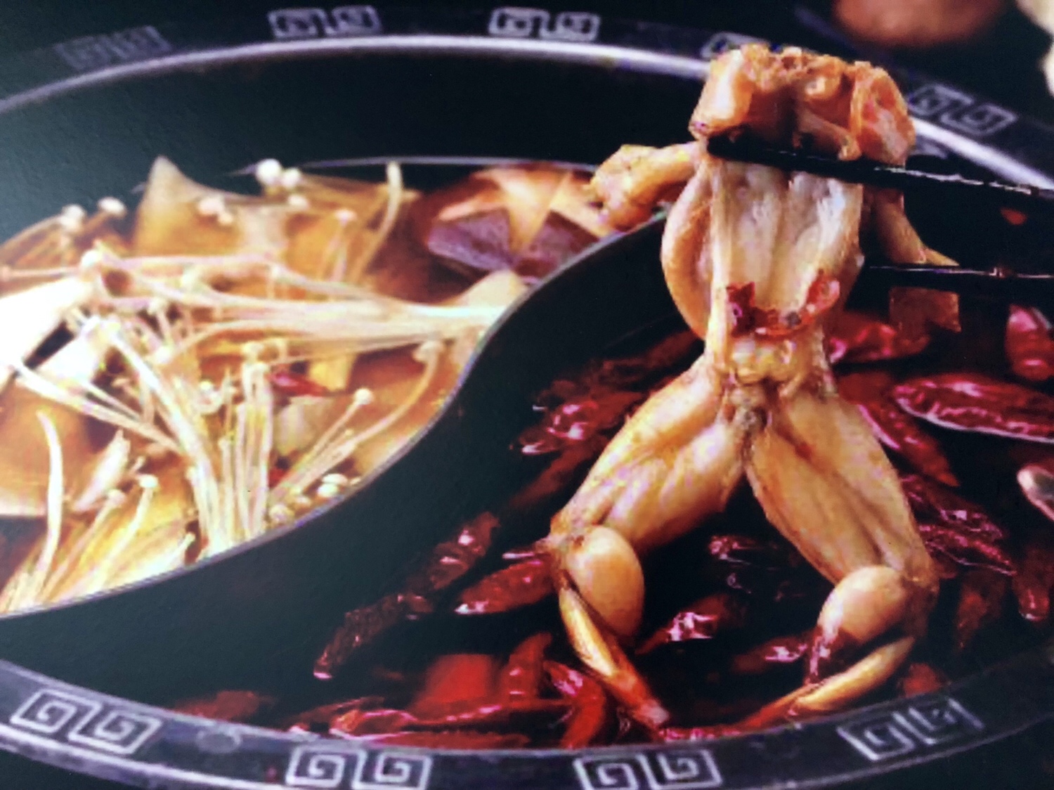 ในขณะที่เดินขึ้นบันไดไป เราเจอภาพที่ทำให้สะดุดเล็กน้อย นั่นคือกบ ซึ่งเหมือนจะเป็นอาหารขึ้นชื่อของที่นี่