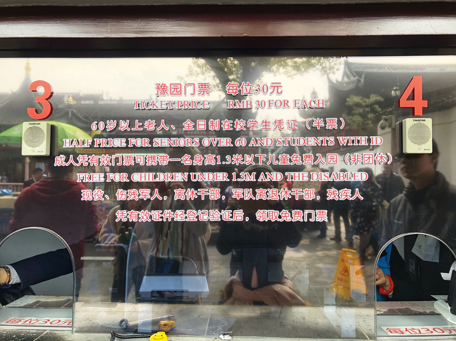 เราเดินเข้าไปต่อแถว แล้วสายตาก็มองผ่านป้ายอย่างรวดเร็ว ค่าเข้า ปกติ 30 หยวน แต่ถ้าผู้ใหญ่อายุ 60+ หรือนักเรียนลดครึ่งราคา คราวนี้ 2 คน ขุ่นพ่อขุ่นแม่ได้ลดราคาแล้ว เรารีบเรี่ยรายพาสปอร์ตของทั้งสอง