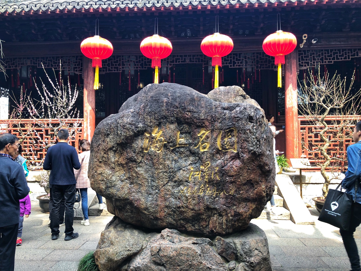 จากนั้นก็เดินดูป้ายมาเรื่อย ๆ จนเจอแลนด์มาร์กของที่นี่เข้าแล้ว ซึ่งก็อยู่ด้านข้างของสวนอี้หยวนนี่เอง จุดนี้เลยเป็นจุดที่ผู้คนมารวมตัวกัน บ้างชมปลา ชมวิว บ้างก็ถ่ายรูปกันไป คนเยอะน่าดู