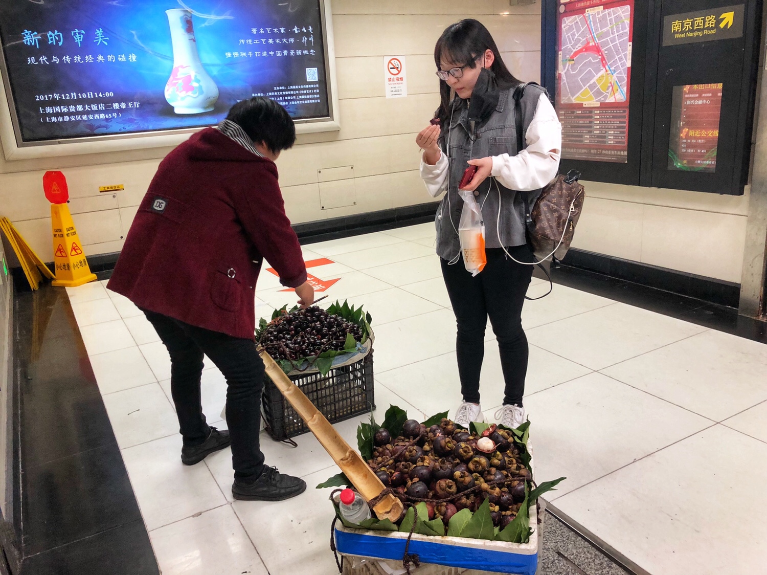 มีขุ่นป้ามาขายมังคุดกันในทางเดินระหว่างสถานีด้วย ใครไคร่ค้าค้าจริง ๆ ที่นี่