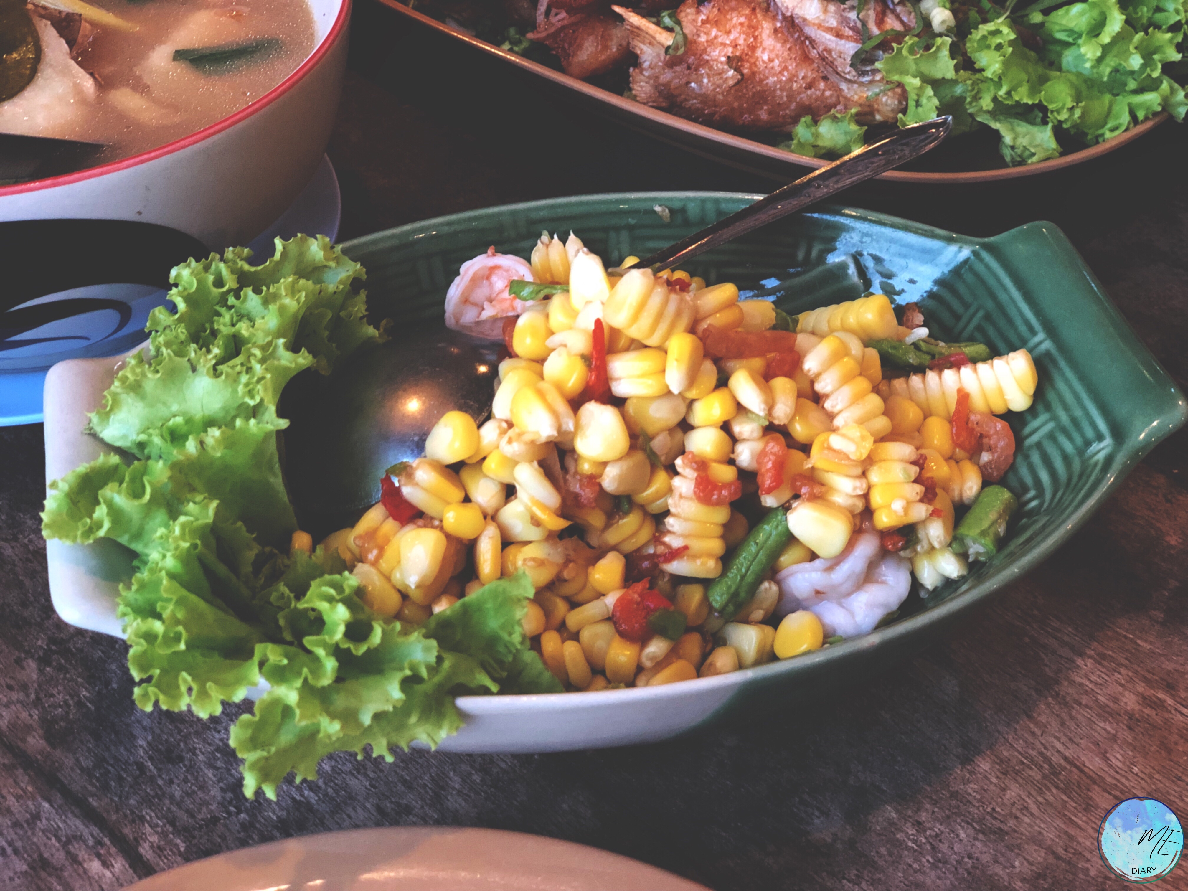 จานแรกมาเสริฟเป็นตำข้าวโพด ⭐️ความอร่อย 3 ดาว⭐️