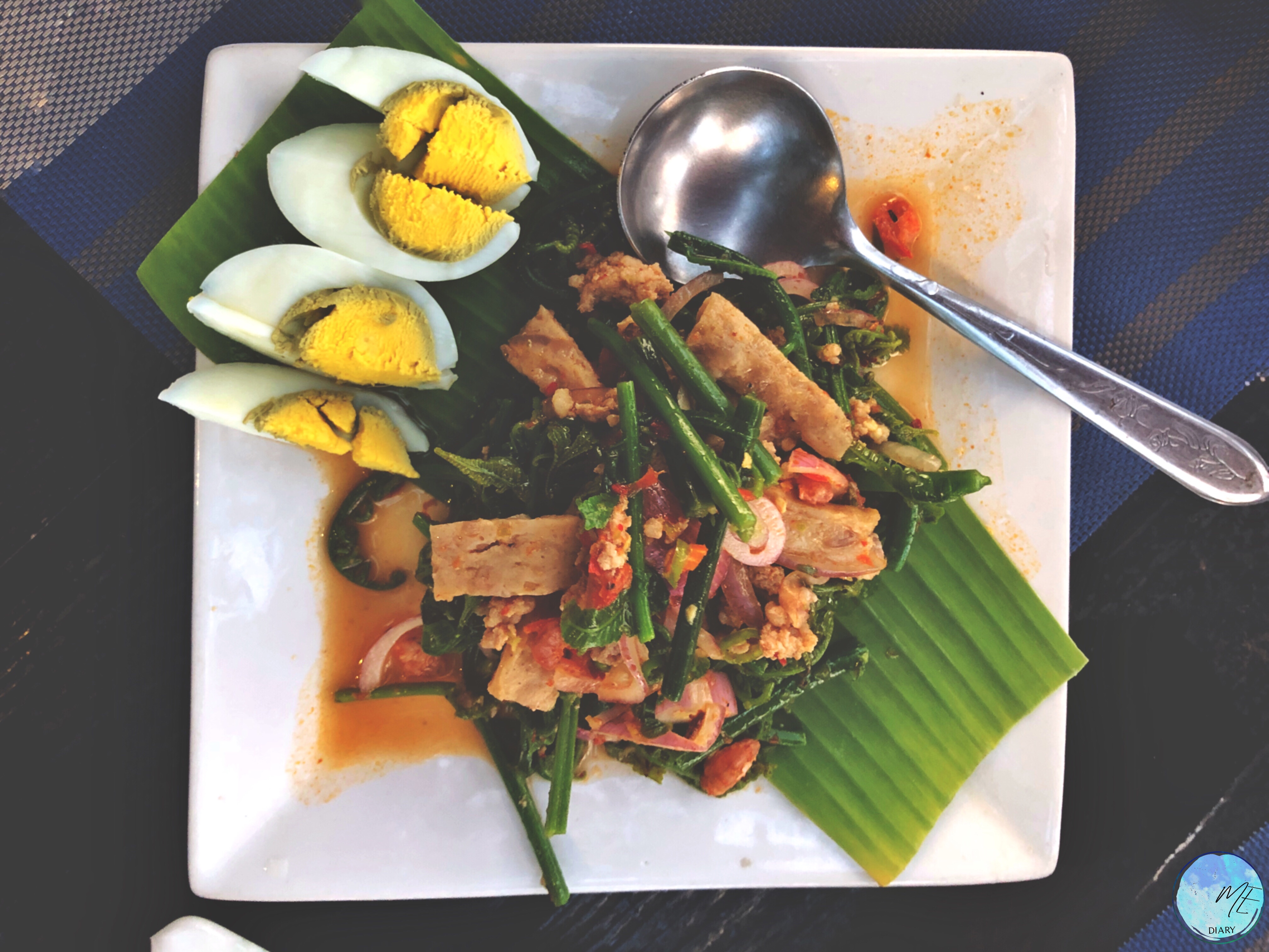 มาถึงอาหารจานแรก ไข่ป่าม เป็นไข่ที่เอามาใส่ใบตองแล้วปิ้ง ถือเป็นอาหารสุขภาพได้เลย ⭐️ระดับความอร่อย 4 ดาว⭐️