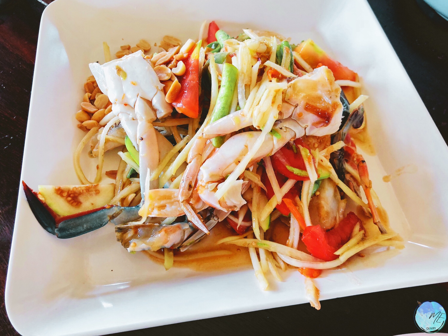 จานนี้ต้องเป็นของเราอยู่แล้ว “ตำปูม้าสั่งปูม้า จะสั่งให้เค้าลวกปูให้ก็ได้ถ้าไม่ทานดิบ หรือสั่งสดครึ่งดิบครึ่งก็ได้ รสชาติแบบไหนสั่งได้หมด