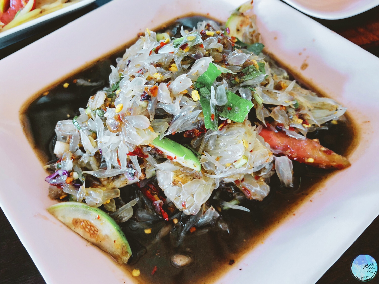 ร้านนี้อร่อยเกือบทุกอย่างเลยนะ แต่ “ตำส้มโอ” จานนี้ขุ่นพ่อสั่งทุกครั้ง บางครั้งถึงกะสั่งกลับบ้าน ขุ่นพอบอกมันใช่เลยอ่ะ แต่เราไม่ชอบกินตำส้มโออยู่แล้วเลยแค่แตะๆ ชิมๆ ก็อร่อยอยู่