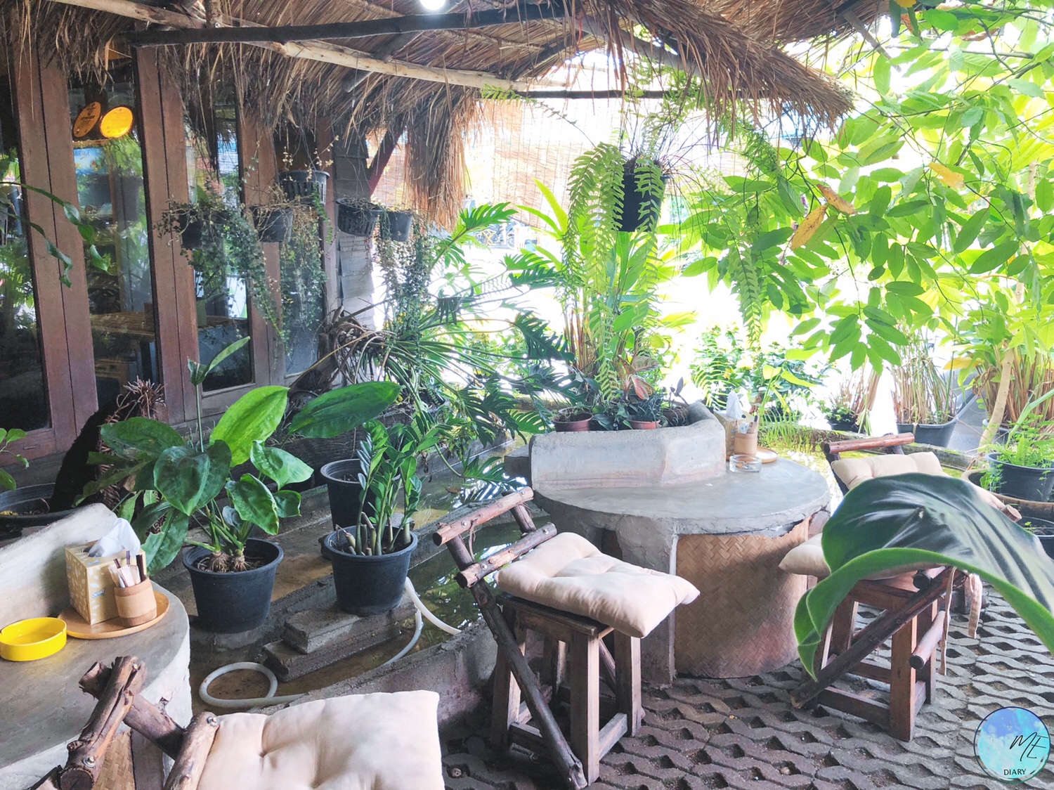 ส่วนข้างนอกก็มีมุมนั่งเล่นห้อมล้อมไปด้วยต้นไม้ที่ให้รู้สึกกรีนๆ บดบังรถที่ผ่านไปมาได้สักหน่อยนึง