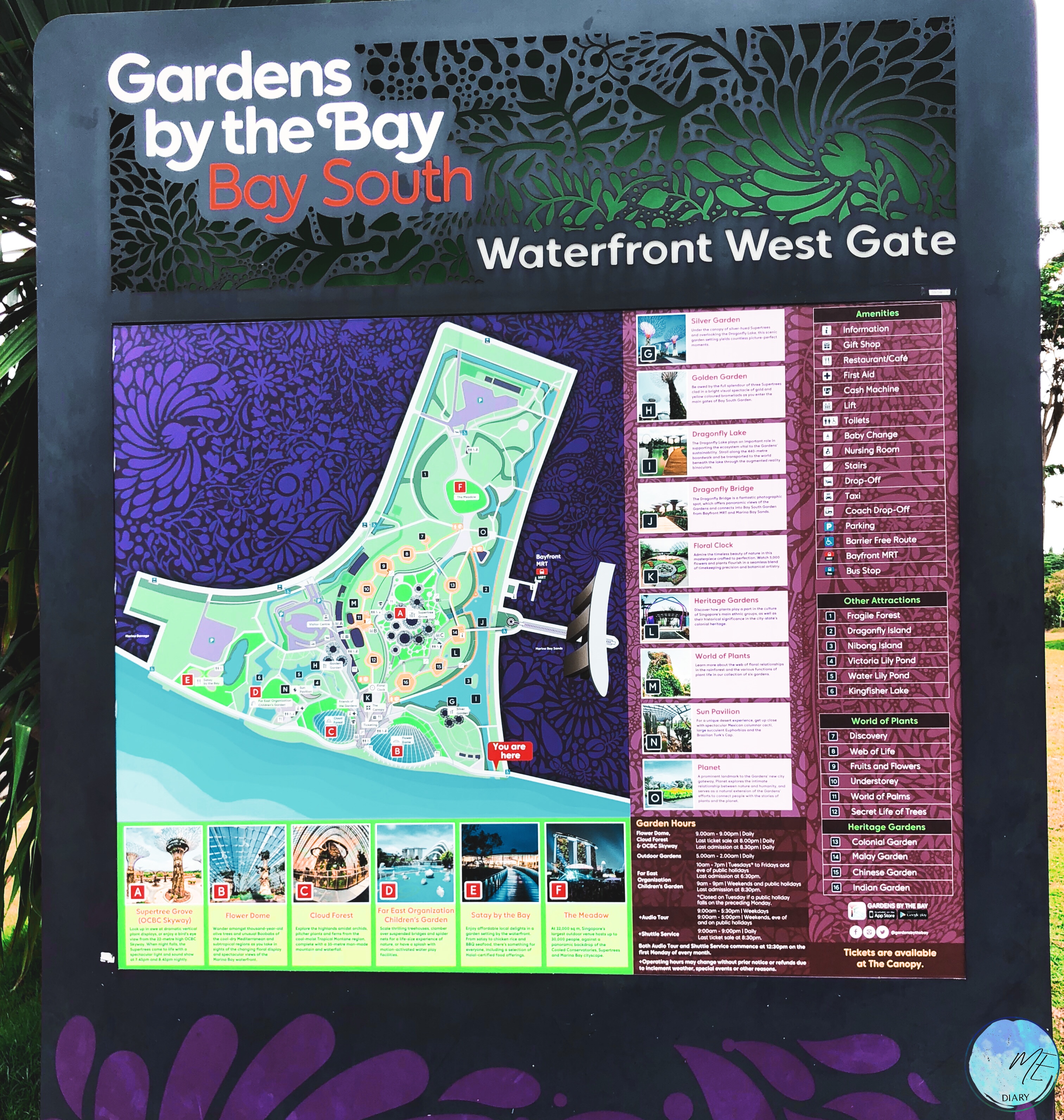 มีสัญลักษณ์เป็นต้นไม้จำลองขนาดยักษ์ที่เรียกว่า Supertree และโดมแก้วเรือนกระจกขนาดใหญ่ที่สุดในโลกอีก 2 โดม ภายในนั้นได้มีการจำลองสภาพอากาศแบบต่างๆของต้นไม้ หนึ่งในนั้นคือป่าดิบชื้นที่มีการสร้างน้ำตกจำลองในร่มที่สูงที่สุดในโลกด้วย เรียกว่าเป็นสวนที่มีความเป็นที่สุดของโลกรวมกันอยู่เยอะจริงๆ