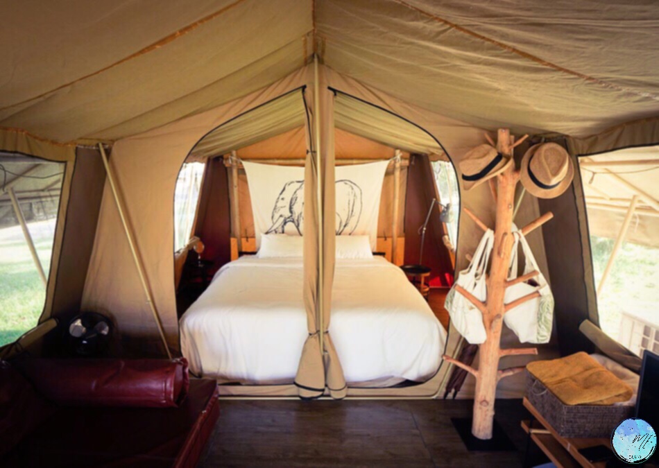 ภายในเค้าตกแต่งในสไตล์ซาฟารี พร้อมเครื่องอำนวยความสะดวกครบครัน แถมมีหมวก ร่ม กระเป๋า ให้ใส่ภายในรีสอร์ท เอาไว้ใส่ถ่ายรูปเก๋ๆให้เข้ากับอารมณ์เด็กแคมป์ด้วย