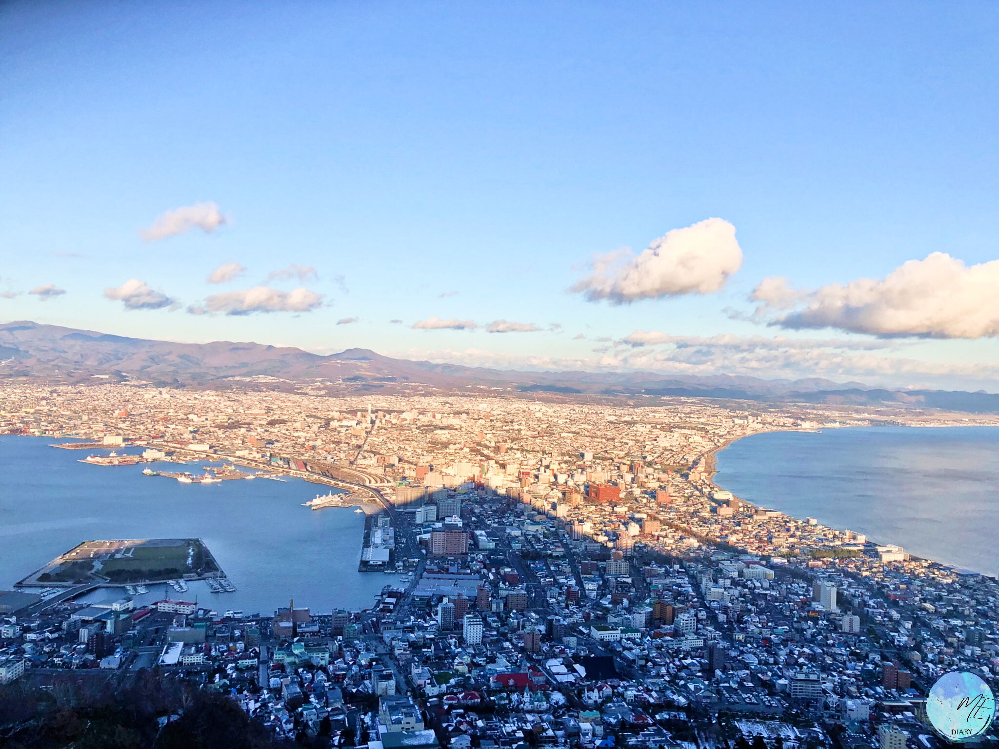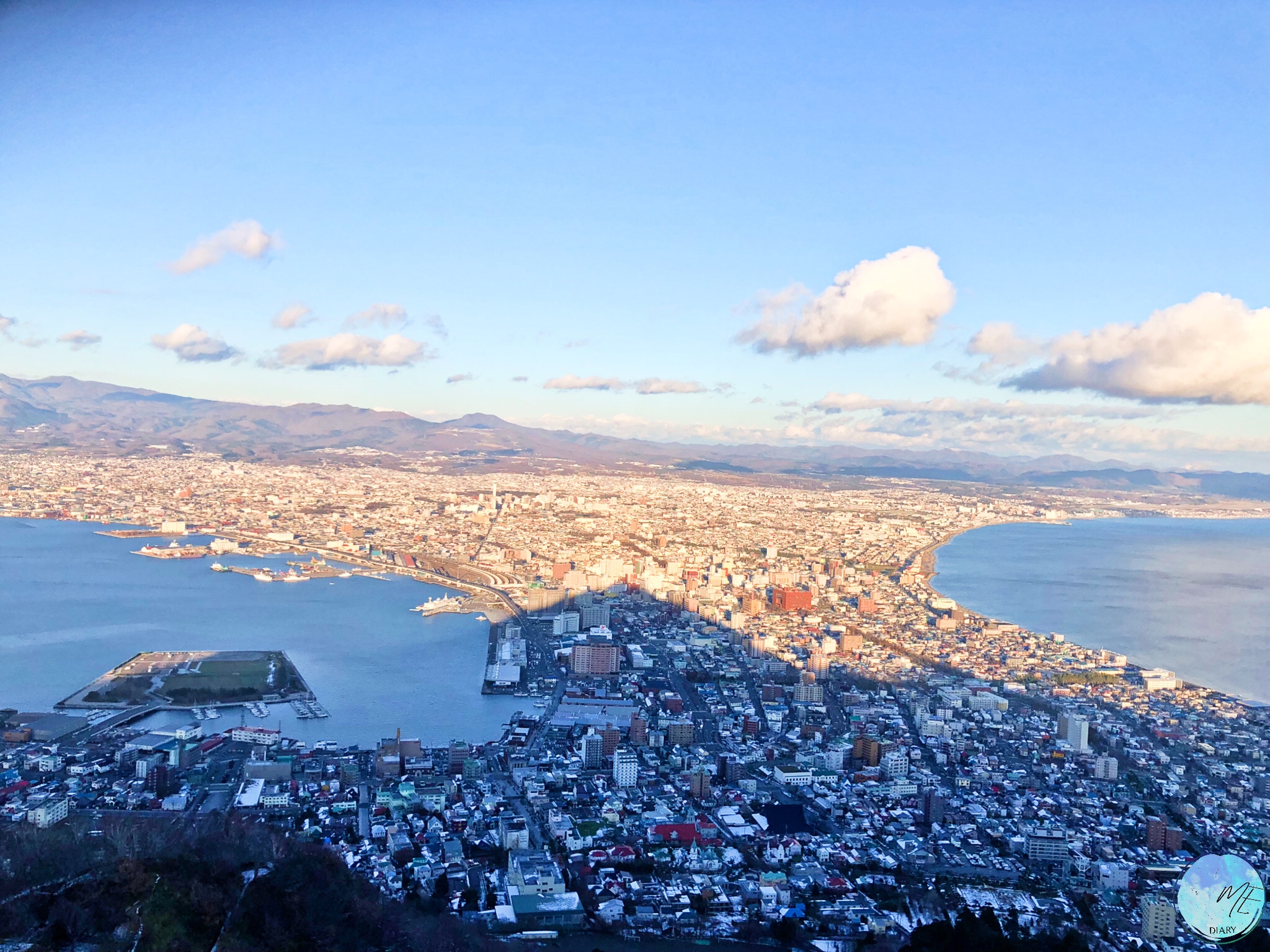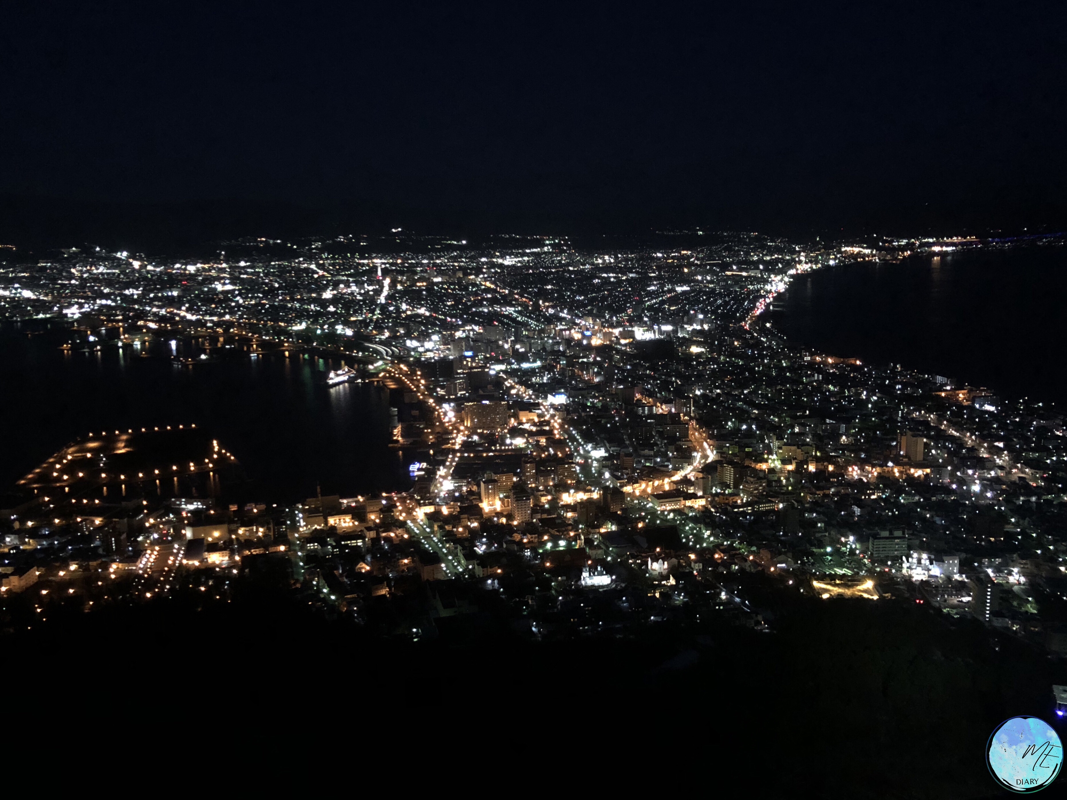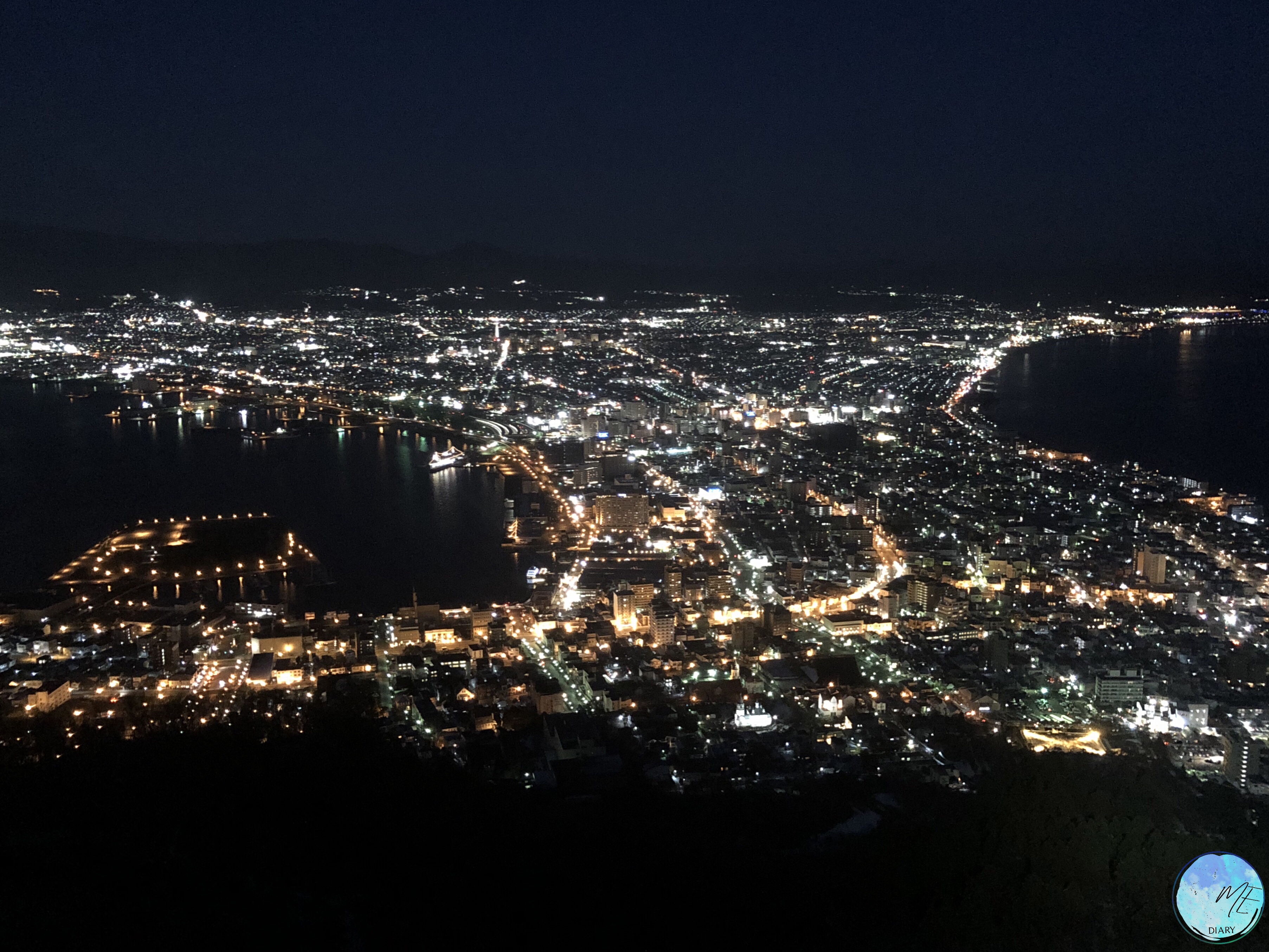 วิวจากยอดเขาฮาโกดาเตะที่มองกลับลงมายังท่าเรือ และตัวเมืองที่โอบล้อมด้วยทะเลทั้งสองข้างใน ยามค่ำคืนนั้น นับว่าสวยงามแปลกตา และว่ากันว่าเป็นวิวกลางคืนที่สวยงามที่สุด 1 ใน 3 ของโลกทีเดียว จุดชมวิวบนยอดเขาฮาโกดาเตะนี้ ในฤดูหนาวจะ ขึ้นไปได้แต่รถกระเช้า (Ropeway) เท่านั้น ถนนจะปิดเพื่อป้องกันอันตรายขณะหิมะตก ส่วนในฤดูอื่นอาจเรียกแท็กซี่หรือนั่งรถบัสขึ้นไปได้ด้วย แต่รถกระเช้าก็ยังคงเป็นทางเลือกที่เร็วและสะดวกที่สุดอยู่ดี
