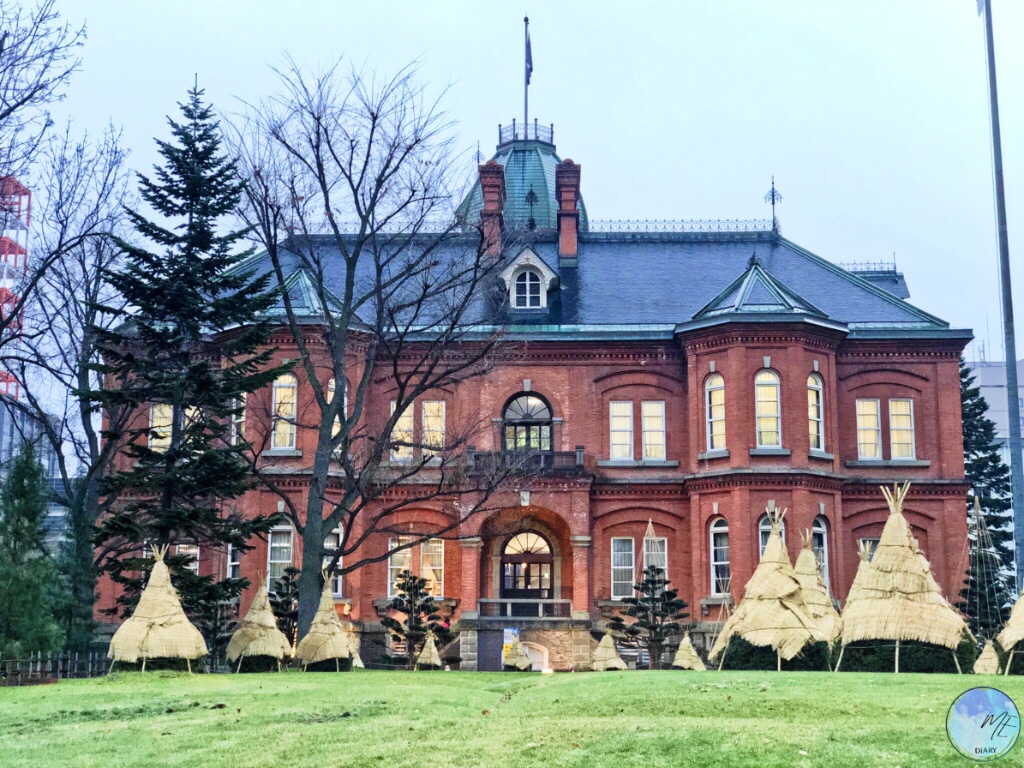 ศาลาว่าการเมืองฮอกไกโดหลังเก่า (ทำเนียบอิฐแดง) หรือ Former Hokkaido Government Office(北海道庁旧本庁舎) ถึงแม้ในช่วงหน้าหนาวแบบนี้เราจะไม่ได้เห็นสวนดอกไม้ด้านหน้าอาคารขณะนี้มีเพียงฟางกันหิมะที่คลุมต้นไม้อยู่ มันก็สวยแปลกตาดีเหมือนกัน