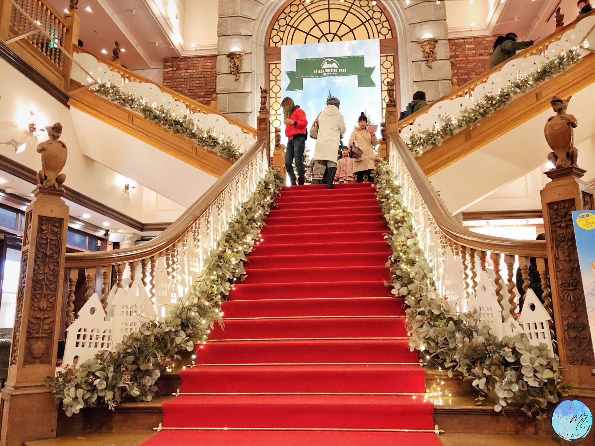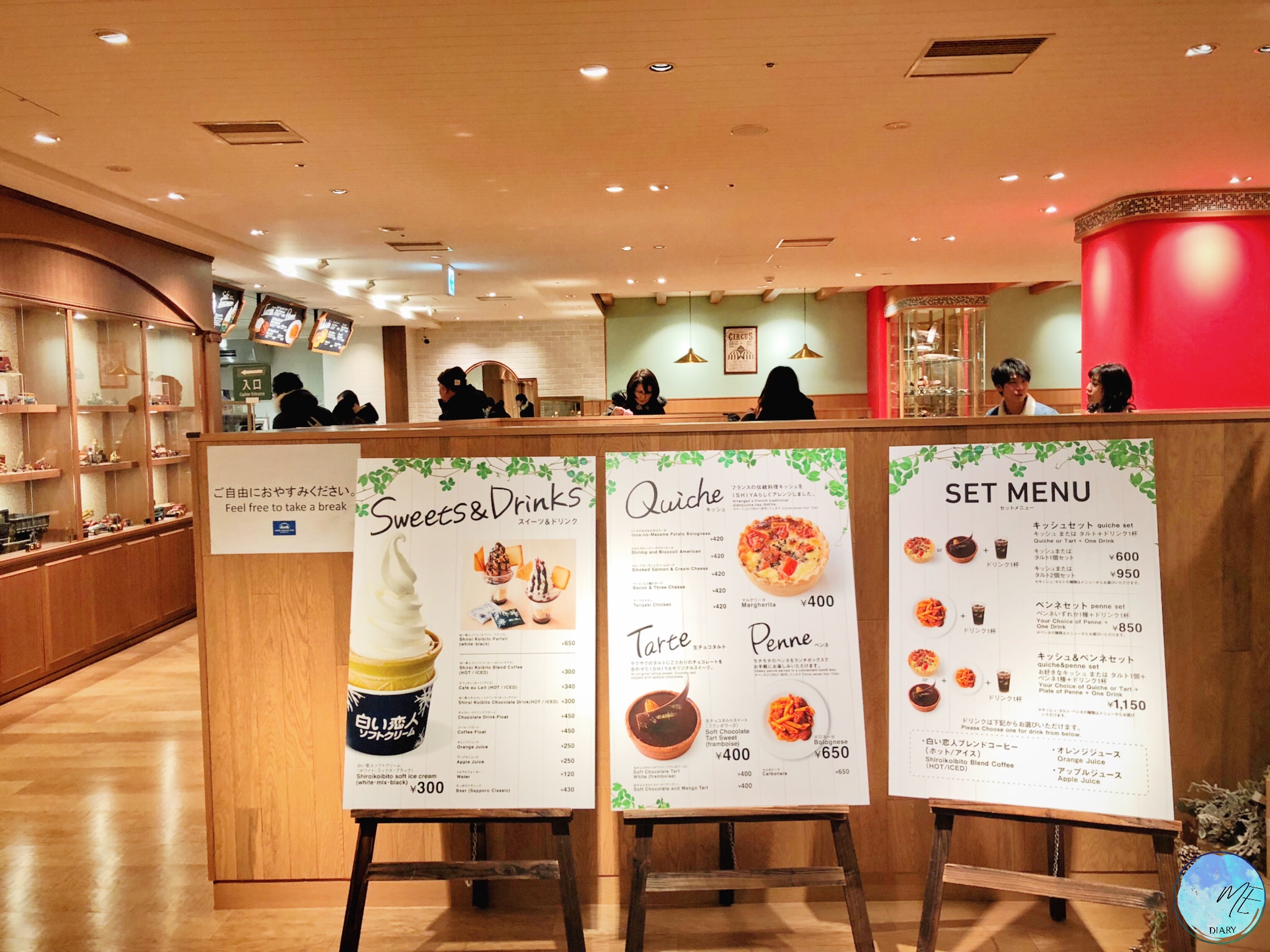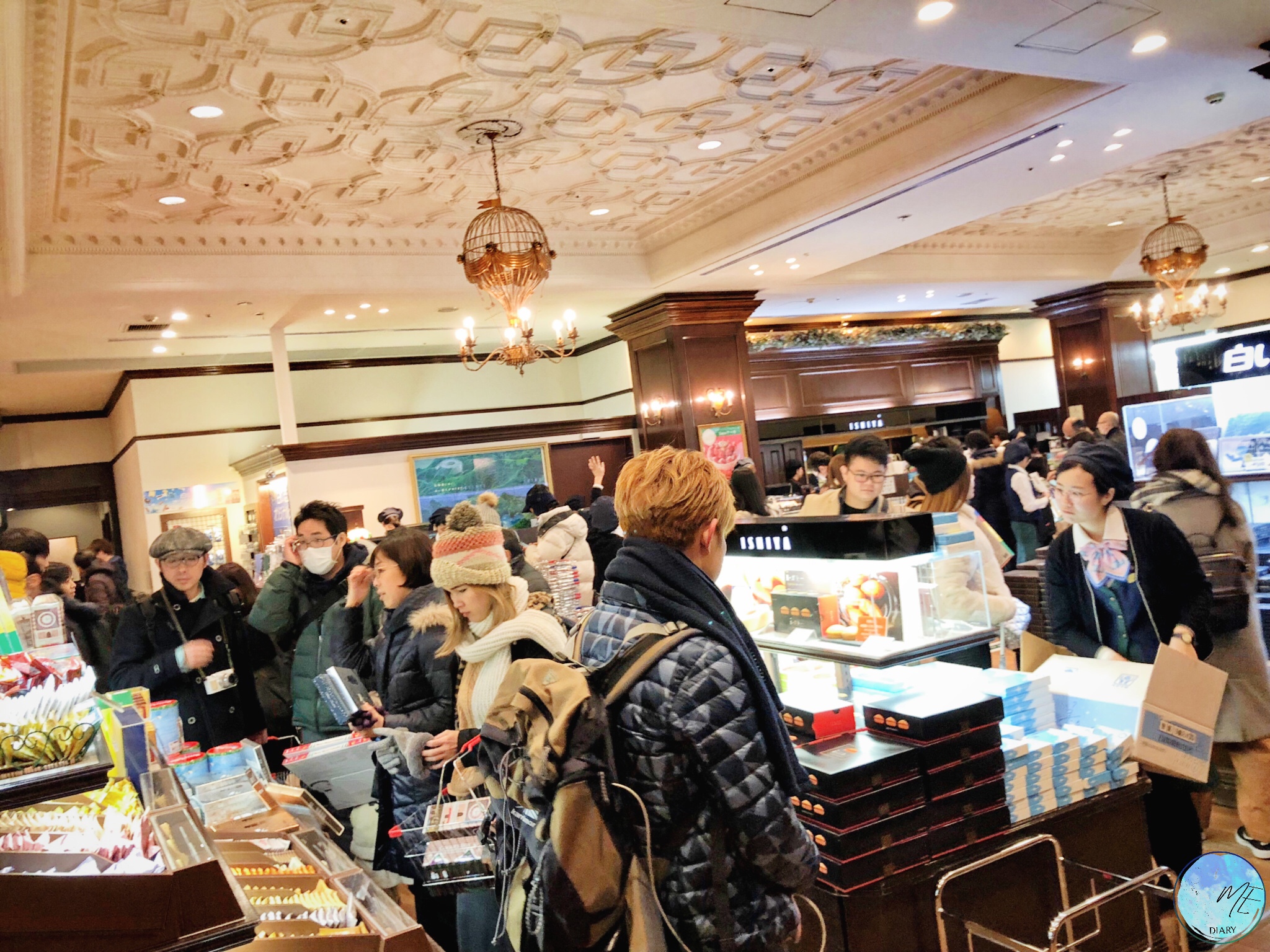 เดินเล่นด้านนอกซึมซับความโรแมนติกอยู่นานจนตัวเริ่มจะแข็งถึงเริ่มรู้สึกว่าควรแก่การเข้ามาข้างในกันได้แล้ว ห้องโถงหรูหราที่ชั้นล่างคือ ขนมของฝาก ส่วนชั้นบนเป็นร้านคาเฟ่ที่ควรค่าแก่การขึ้นไปมากๆ
