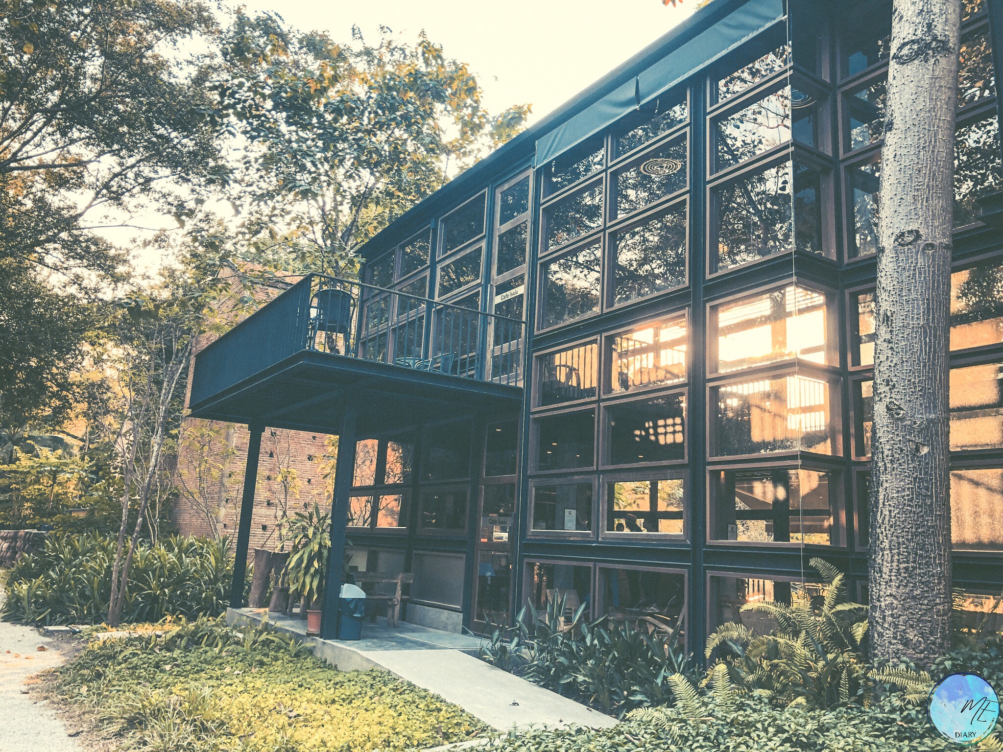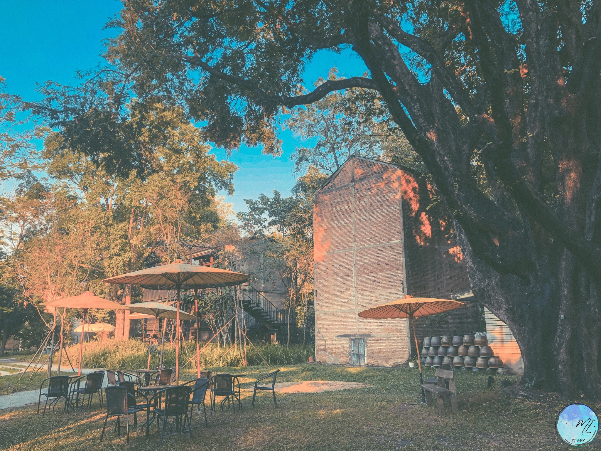 คาเฟ่โรงบ่ม ตั้งอยู่ใน เก๊าไม้ล้านนา รีสอร์ท ท่ามกลางสวนป่าธรรมชาติ ร่มรื่นแวดล้อมไปด้วยต้นไม้หลากหลายชนิด พันธ์ุไม้สะสมหายากและธรรมชาติที่อุดมสมบูรณ์ ตัวร้านเป็นเรือนกระจกสองชั้น ตกแต่งด้วยเฟอร์นิเจอร์ไม้ ดูโล่งสบาย มองเห็นสนามหญ้าและโรงบ่มเก่าแก่สีเขียวสบายตา บอกก่อนนะใครที่ไปต้องเผื่อเวลานิดนึง เพราะต้องถ่ายรูปกันจนลืมเวลาแน่นอน