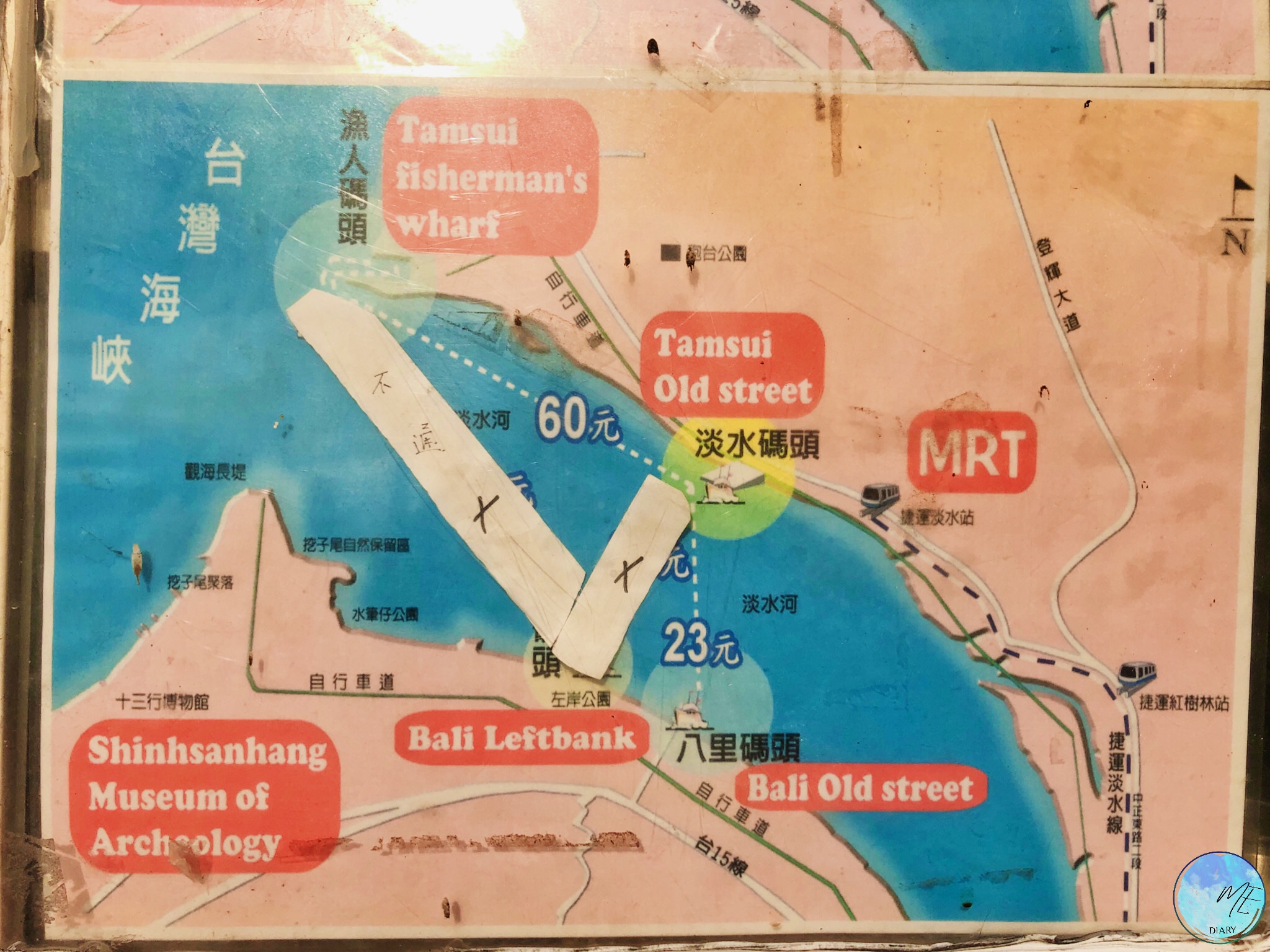 วิธีการเดินทางจากตั้นสุ่ย เดินจากสถานีตั้นสุ่ย (Tamsui Station) มาทางริมทะเล เดินมาเรื่อยๆ ก็จะพบกับท่าเรืออยู่หลายท่า ซึ่งท่าแรกนี่หล่ะเป็นท่าเรือที่จะไปเกาะปาหลี