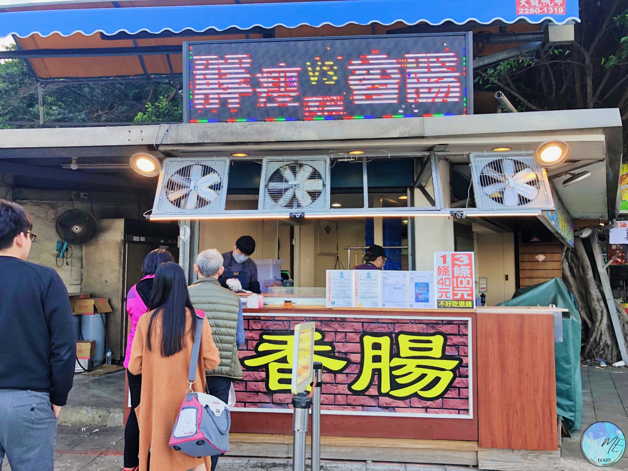 ร้านนี้คนต่อคิวเยอะมาก เป็นฮอทดอกกุนเชียง อันละ 35 NT 3 อัน 100 NT