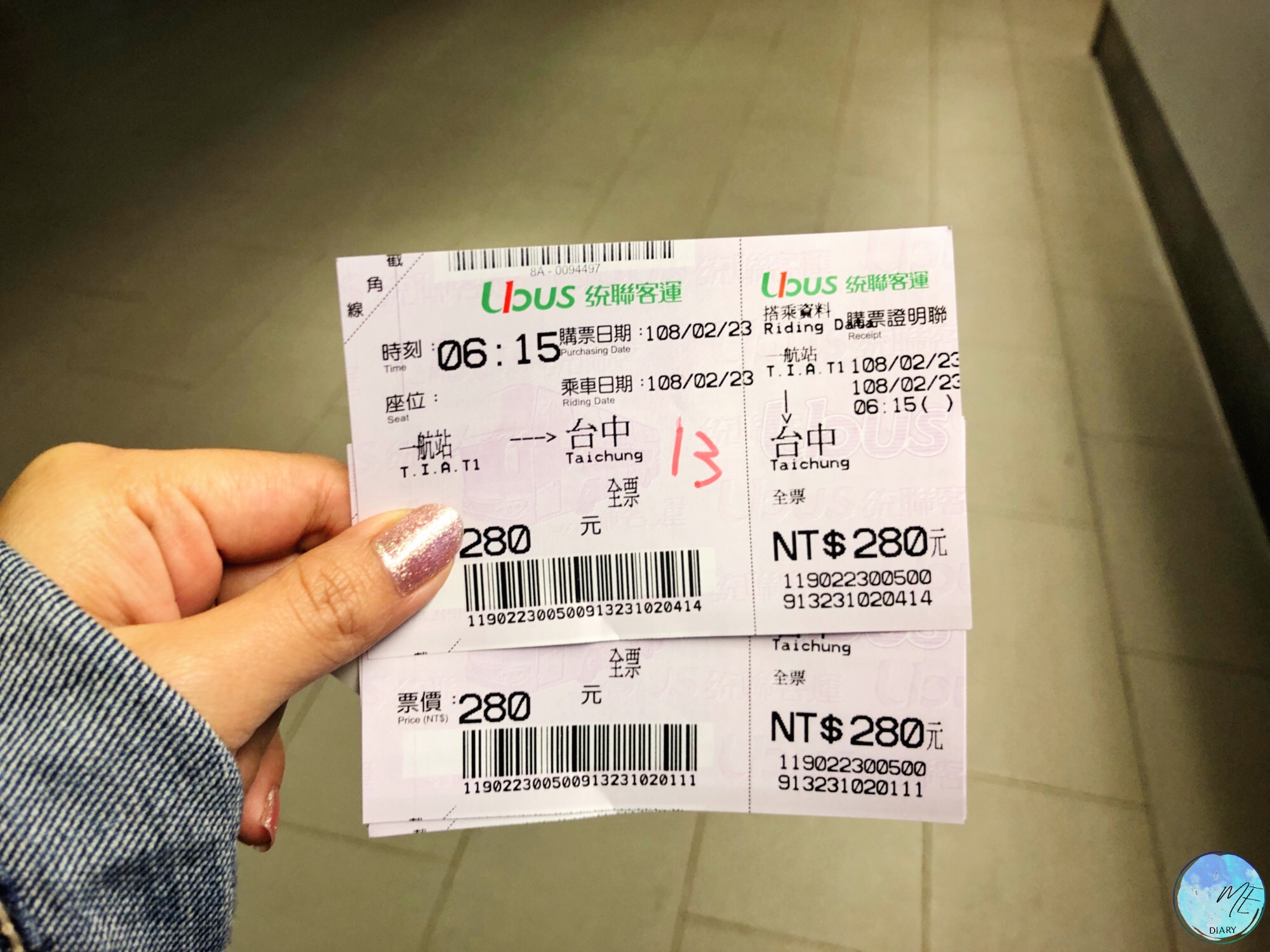 ของ Kuokuang Bus No.1860 ราคา 280 NT เท่ากันกับ Ubus ก็สามารถเดินทางไปไถจงได้เช่นกัน