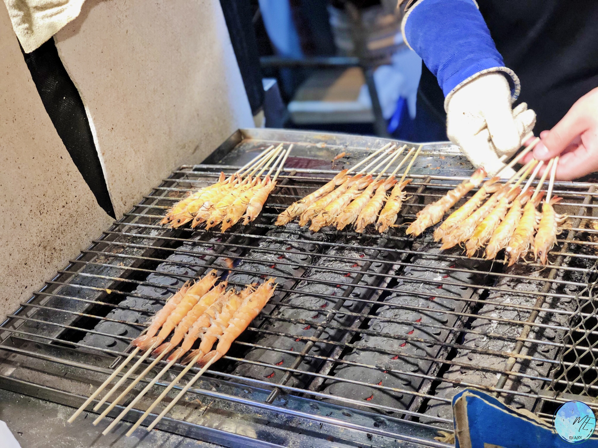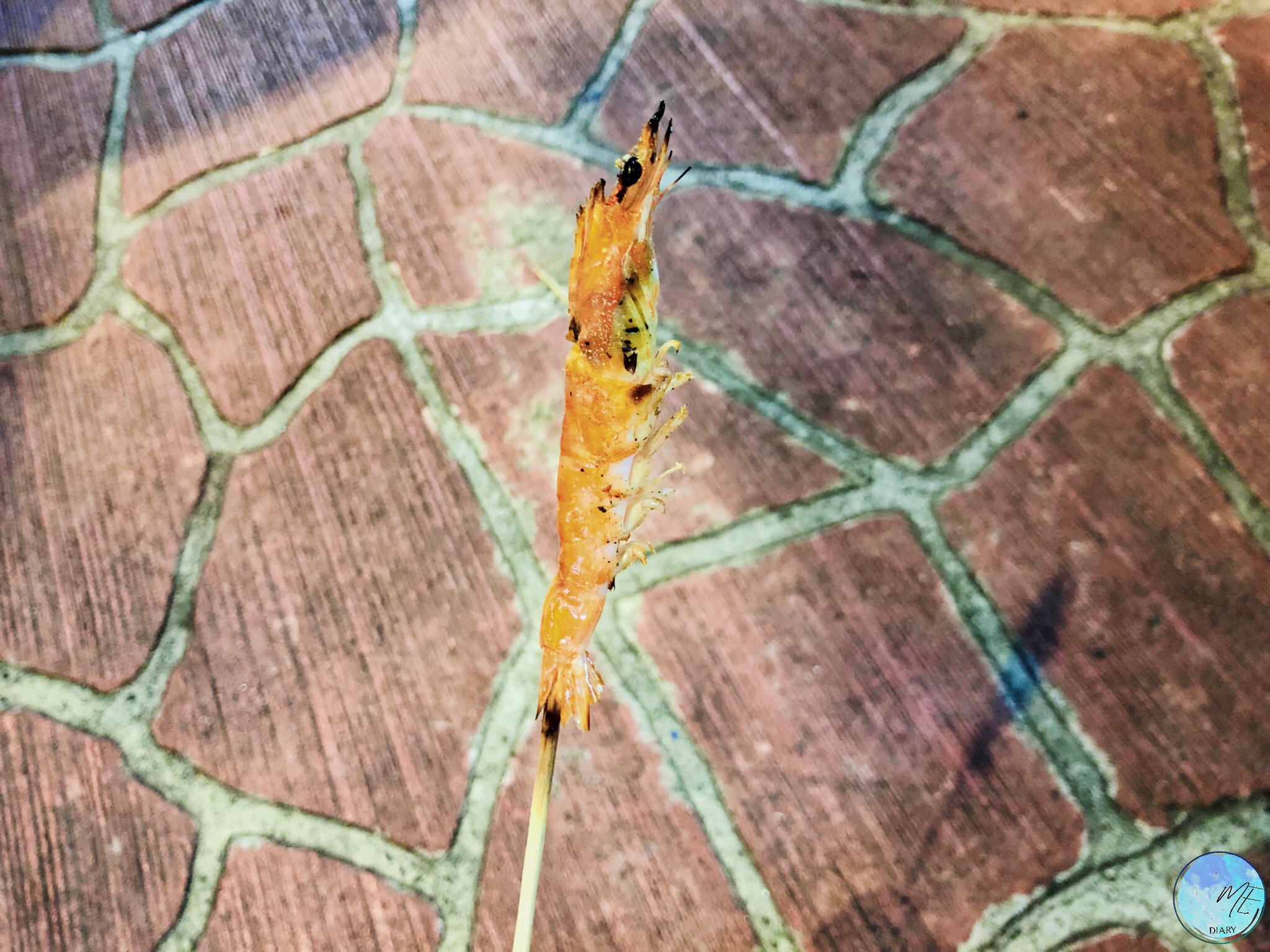 มาต่อที่กุ้งย่าง คือกุ้งสดๆ ในน้ำ จับขึ้นมาเสียบไม้เลย เห็นแล้วสดุ้งเล็กน้อย