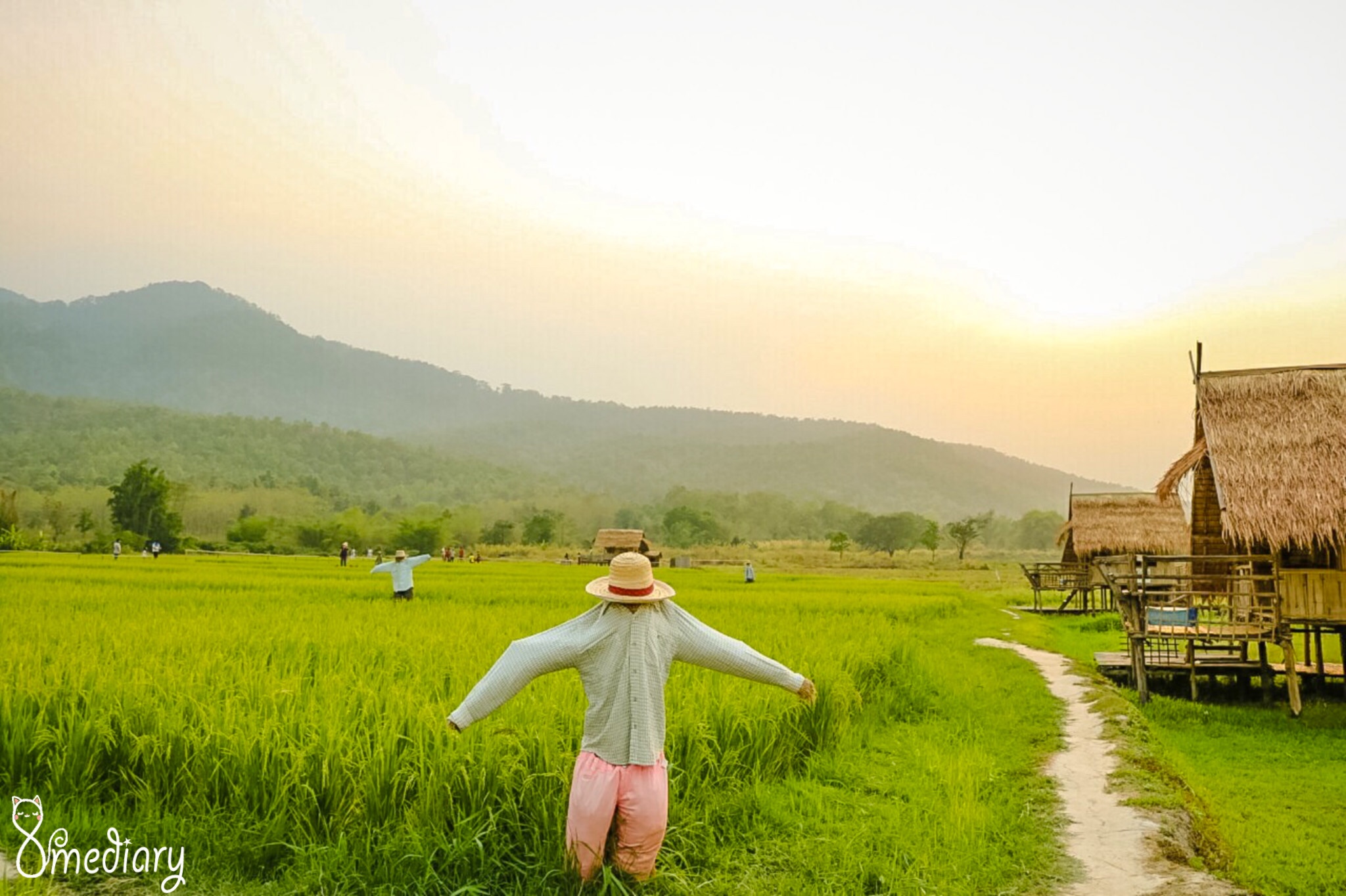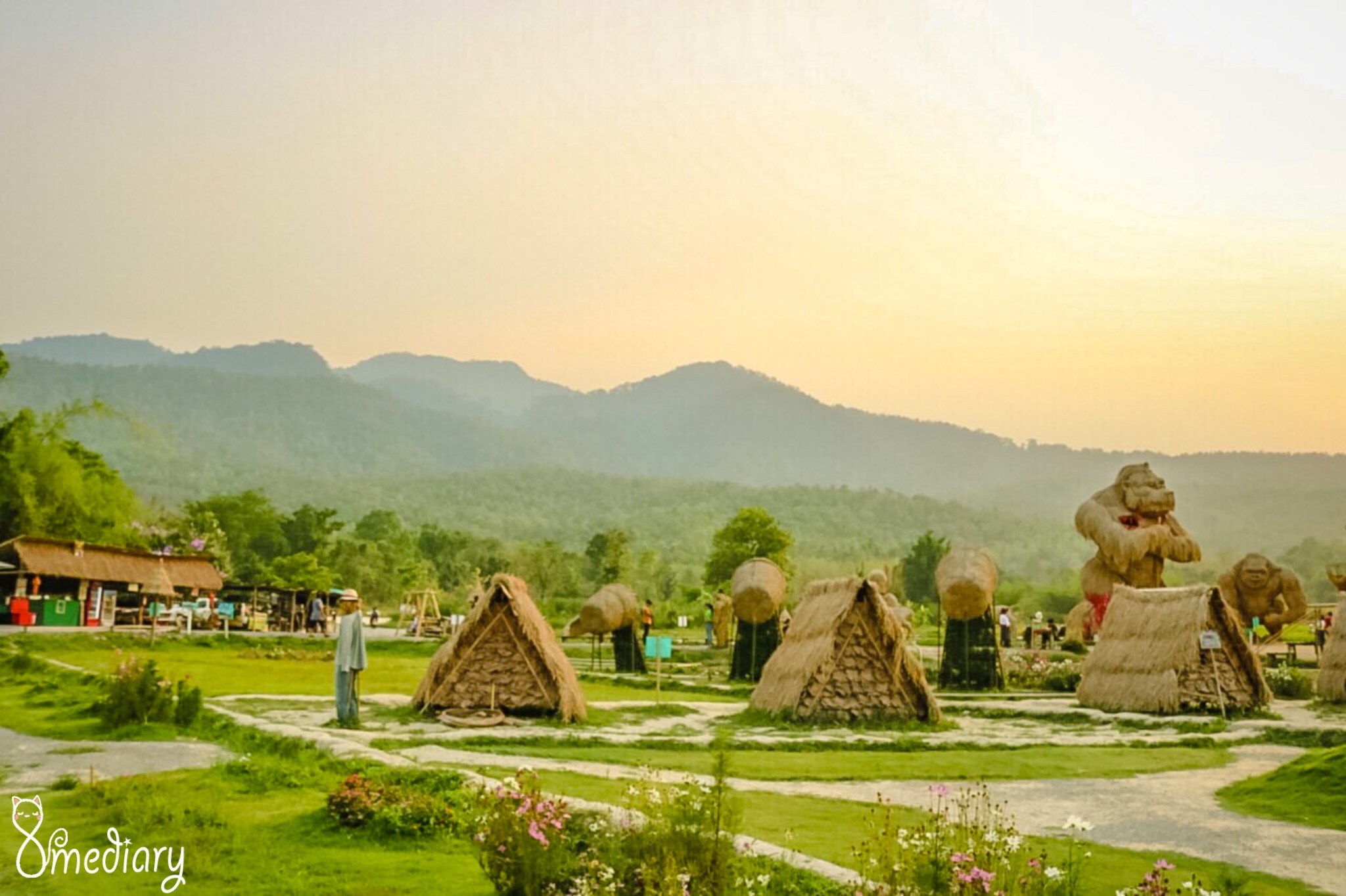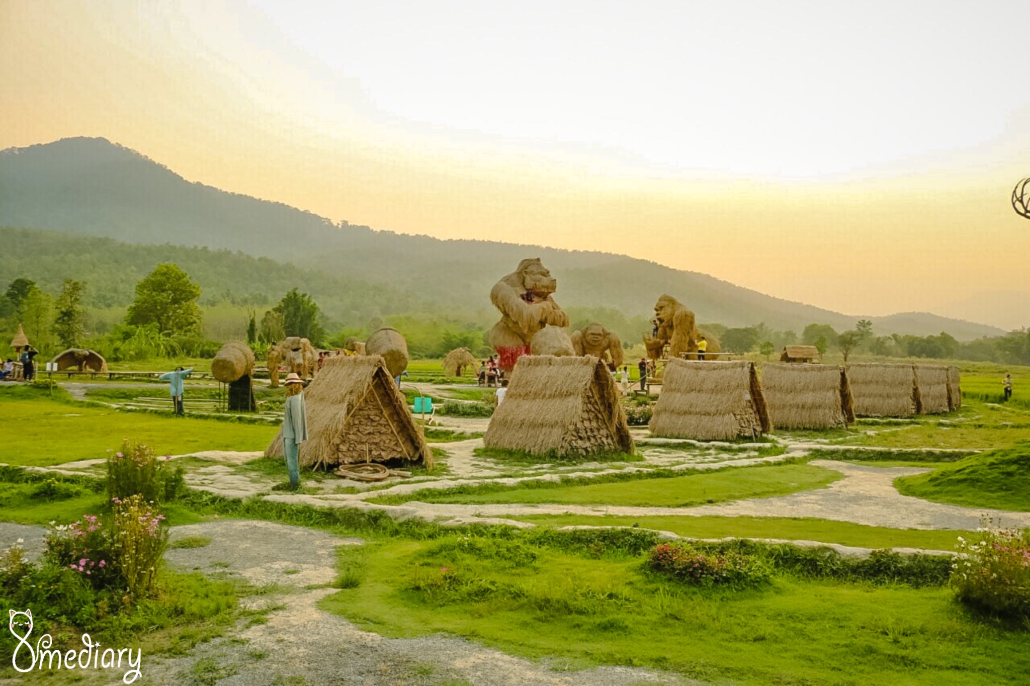 ด้านหลังคิงคองยักษ์ยังถูกห้อมล้อมไปด้วยทุ่งนา 🌾🌾🌾 เขียวขจี มีรวงข้าวสีเขียวปนเหลืองให้เราได้ศึกษาธรรมชาติ และถ่ายรูปเล่น นอกจากนั้นที่นี่ยังมีบ้านพัก และลานกลางเต็นท์ให้บริการด้วย