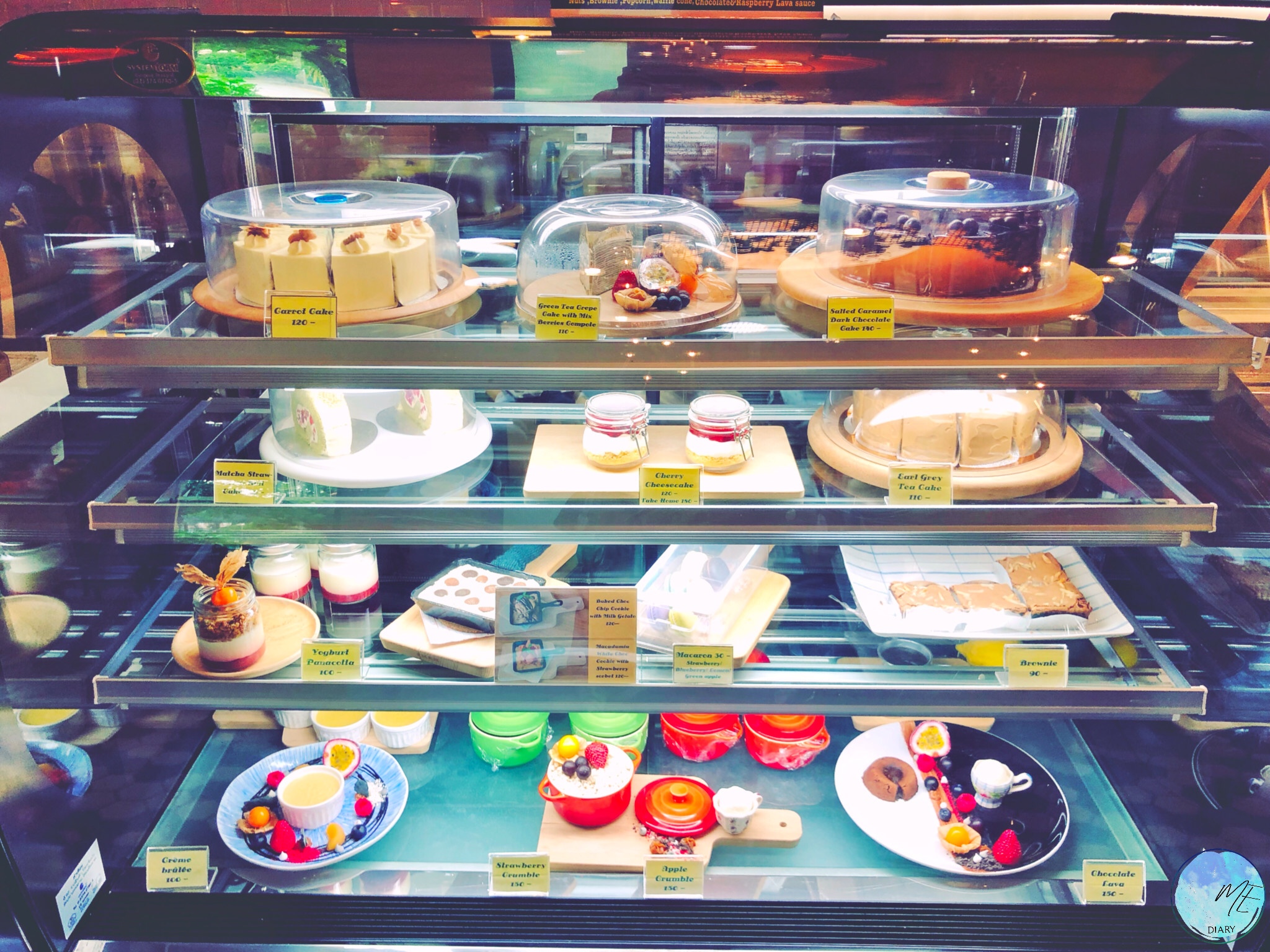 ให้บริการขนมหลากหลาย การันตีรสชาติโดยเชฟ Le Cordon Bleu โดยนอกจากขนมเค้กต่างๆแล้ว ยังมีเจลาโต้สไตล์อิตาเลี่ยนแท้มากมายหลายรสชาติ หมุนเวียนเปลี่ยนไปตามฤดูกาลให้ได้เลือกทานกันตามความชอบเลยค่ะ นอกจากนี้ยังมีเครื่องดื่มเช่น กาแฟ ชาเขียว ชาเอิร์ลเกรย์ ฯลฯ