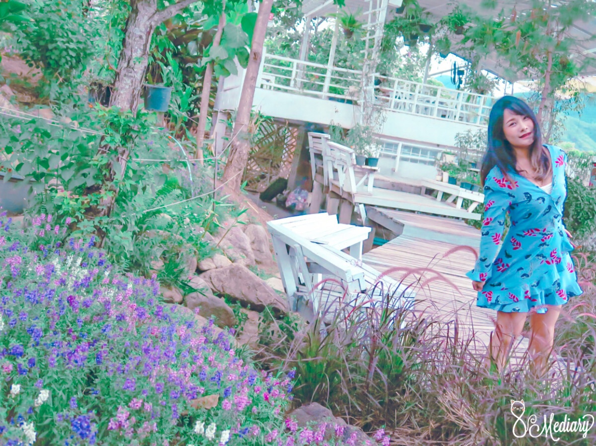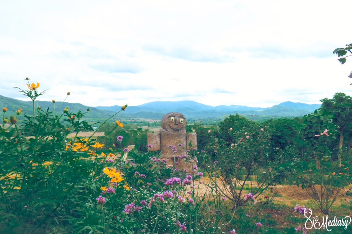 หลังจากฝนหยุด เราก็เดินออกมาตรงวิวเขาด้านข้างร้านกาแฟ โอ้ว น้องฟางยักษ์!!! น่าร๊ากก เป็นอีกจุดชมวิวหนึ่งที่ recommend เลย เดินออกมาสูดอากาศบริสุทธ์ มองฟ้าสีฟ้า และป่าไม้สีเขียว มีดอกไม้เล็กๆขึ้นกลางสวน