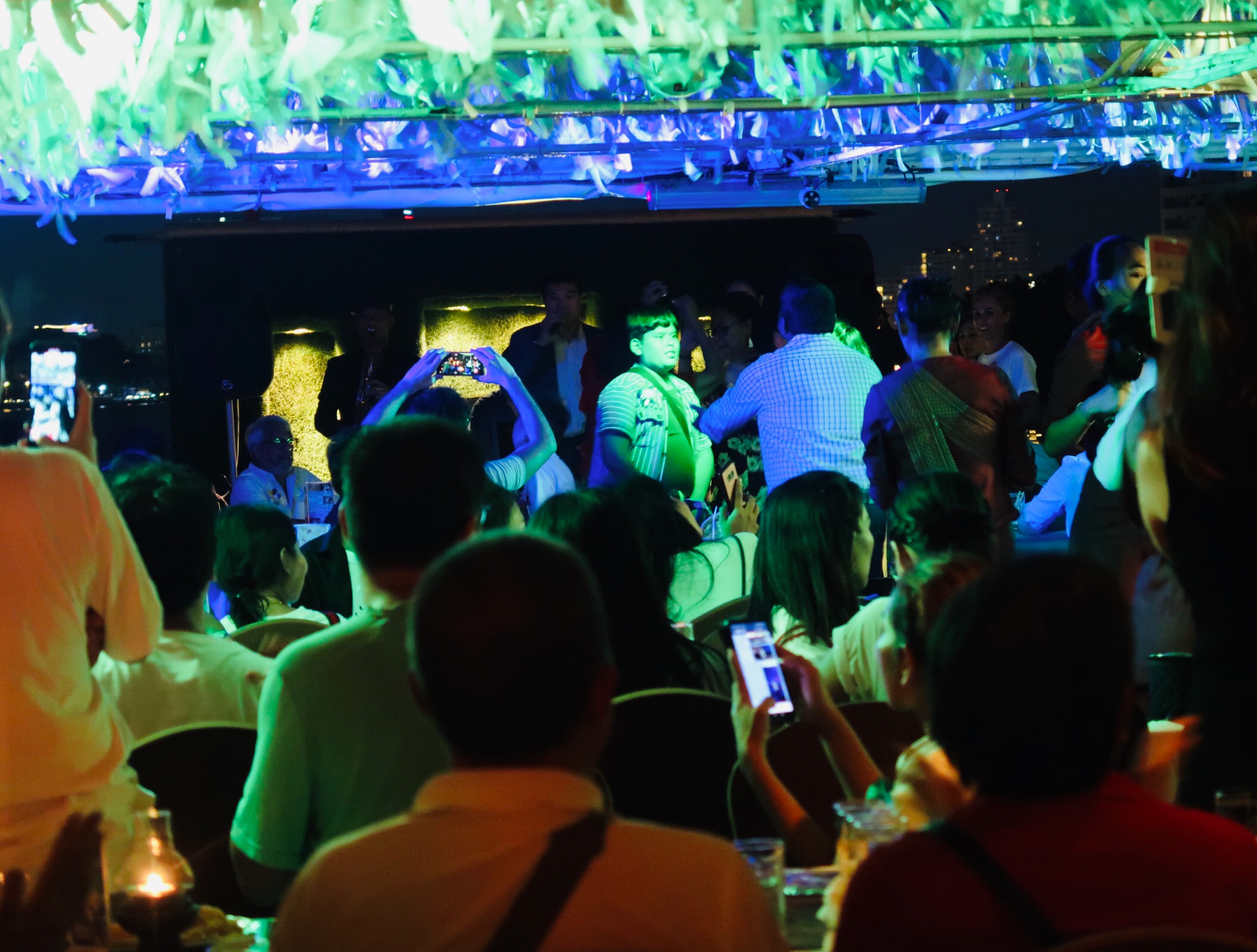 พอกินกันอิ่ม จังหวะในหัวใจก็เริ่มมากันละค่ะ แต่ละโต๊ะลุกเต้นค่ะ นำโดยกลาสีเรือผู้เชี่ยวชาญการเต้นคนนึงที่ดิ้นสุดสวิงริงโกเรียกเสียงเชียร์ได้เยอะเลยค่ะ555 ตะกี้โรแมนติคอยู่ดีๆ ตอนนี้มันมากเลยจ้า ก็สนุกไปอีกแบบมีหลากหลายรสชาติดี