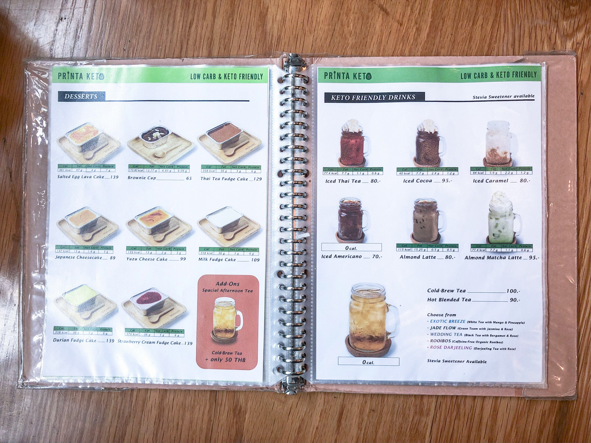 ส่วนเรานี่เลยค่ะ เมนูคีโตทั้งหลายดูหน้าที่เป็นแถบสีเขียวนี่ไง มีทั้งหมดอยู่ 3 หน้า รวมของหวานและเครื่องดื่มด้วย