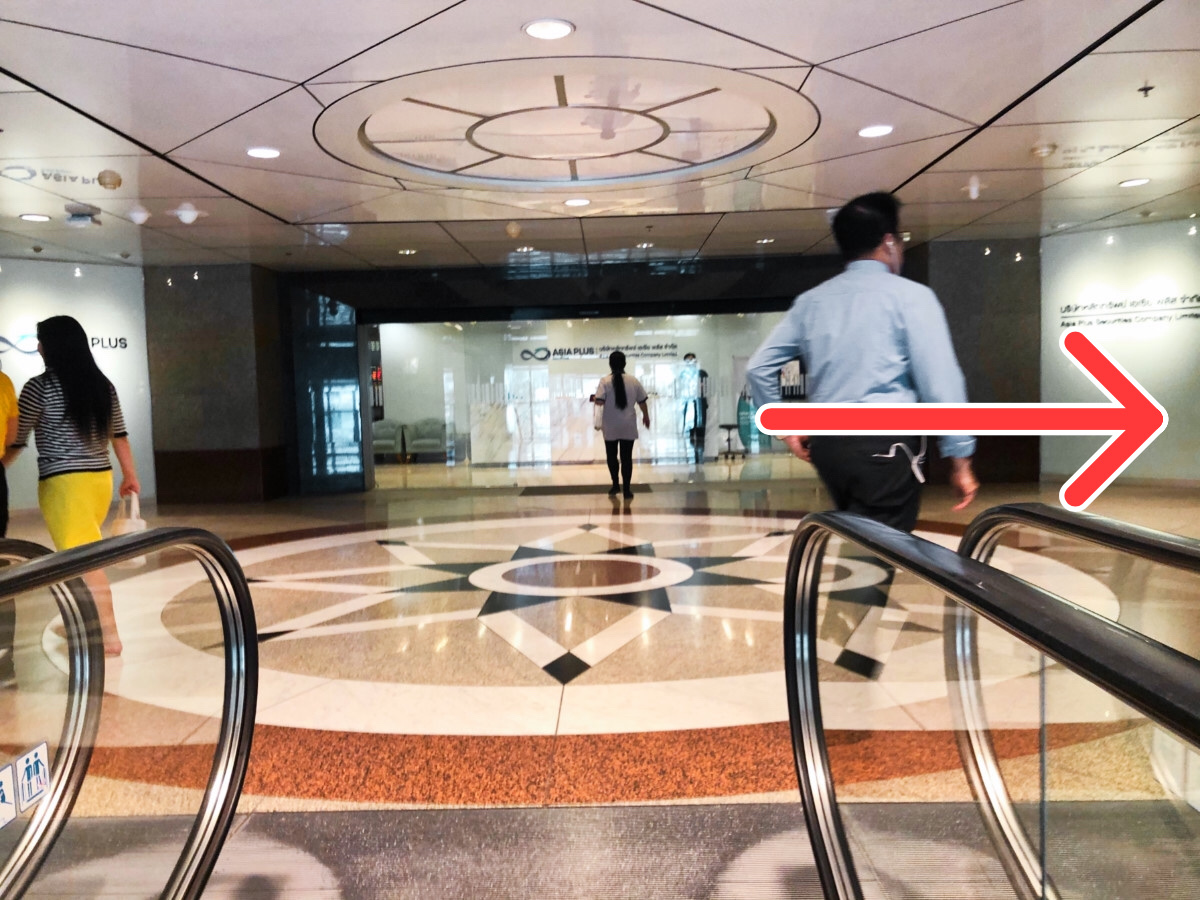 สุดบันไดเลื่อนแล้วให้เดินไปทางด้านขวา