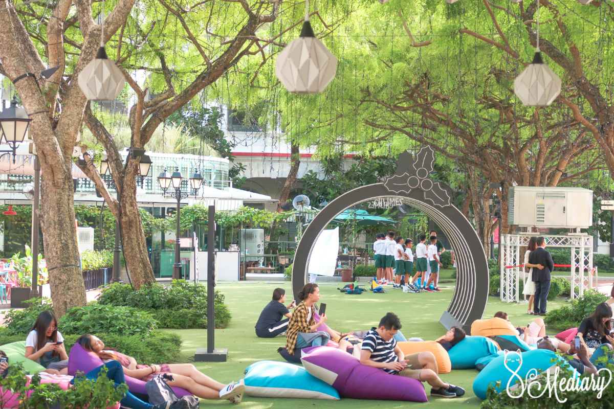 ด้านหลังของโบสถ์ CHIJMES เองก็มีสวน ต้นไม้ใหญ่ และมีเบาะนั่งนิ่มๆไว้สำหรับคนแวะมาแล้วต้องการนั่งพักผ่อนด้วย