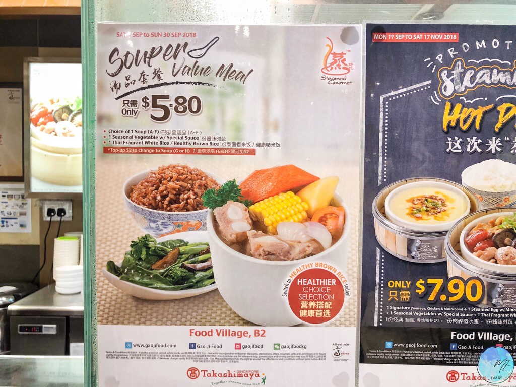 จากนั้นก็เข้าร้าน Food Village ของที่นี่ เพื่อหาเรื่องใช้ EZ-Link อีกแล้ว มาร้านนี้ที่อาหารออกแนวตุ๋นๆ สุขภาพๆ ที่สามารถเลือกข้าวขาว หรือข้าวกล้องได้ เราเลยขอเลือกร้านนี้