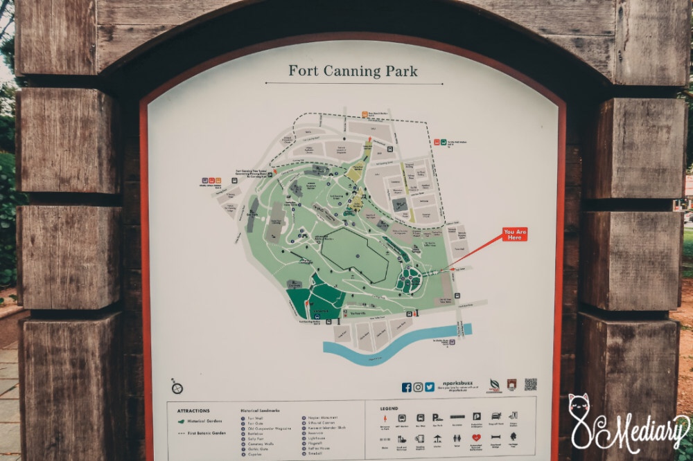 ด้านนี้มีป้าย Fort Canning ด้วย น่าจะเป็นเหมือนทางเข้าหลักเลยก็ว่าได้