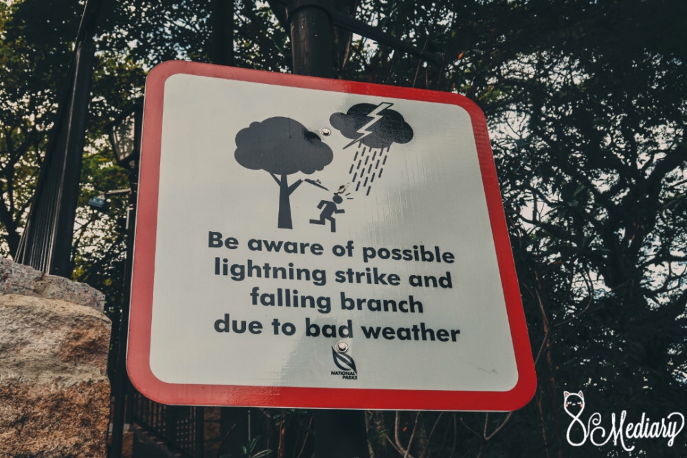 มีระวังฟ้าผ่าด้วย แต่เอาจริงๆ ก็ไม่รู้จะระวังยังไงนะ🤣 เอาเป็นว่าให้ดูสภาพอากาศก่อนที่จะมา หากคาดการณ์ว่าฝนตกก็อาจจะหลีกเลี่ยงการเข้ามาเดินเล่นในสวนจะดีกว่าค่ะ